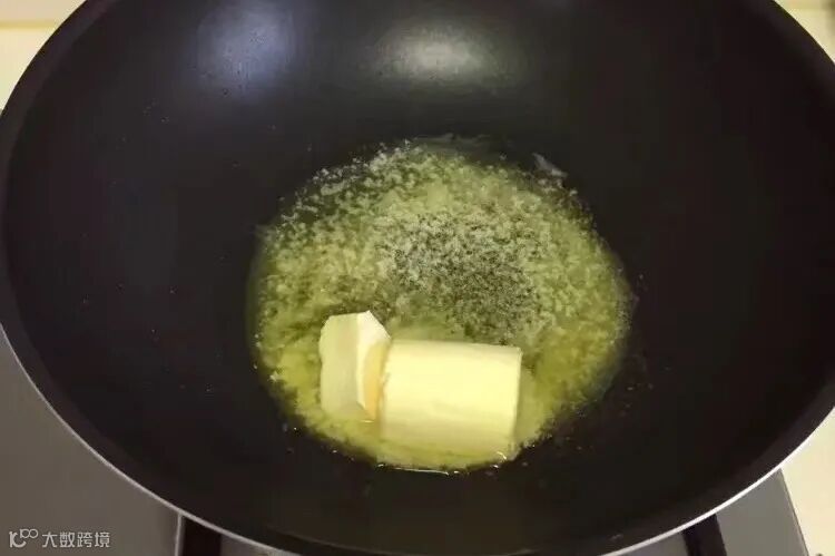 不粘锅内加入黄油,加热融化。