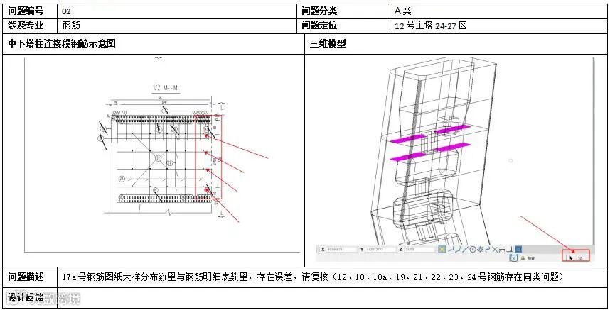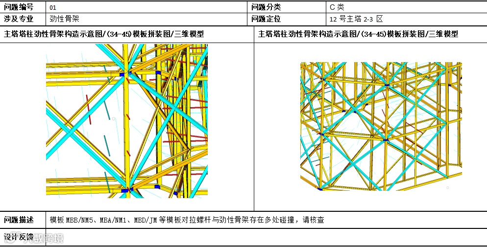 通过精细化模型,直观展现复杂节点的构造形式,对节点部位存在的难点进行施工可行性核查及碰撞检查,提前发现设计问题,形成书面报告并提出优化建议,达到先试后建、消除设计错误、排除施工过程中的冲突及风险。