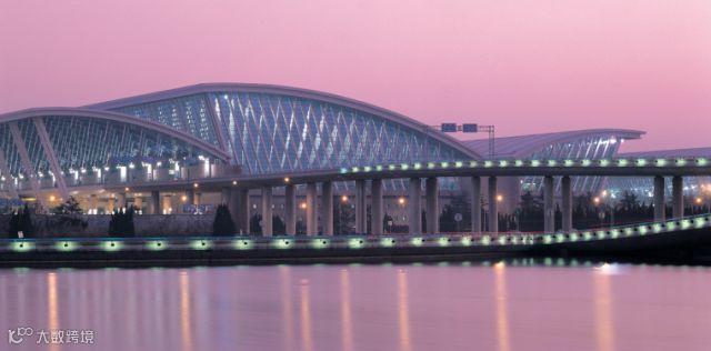从上至下,依次为八万人体育场、上海博物馆、上海大剧院