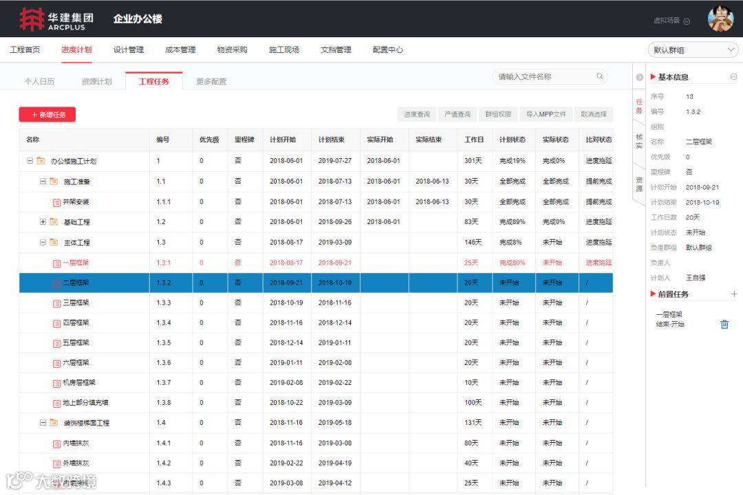 通过计划与实际进度对比,查询不同任务状态下相关构件信息