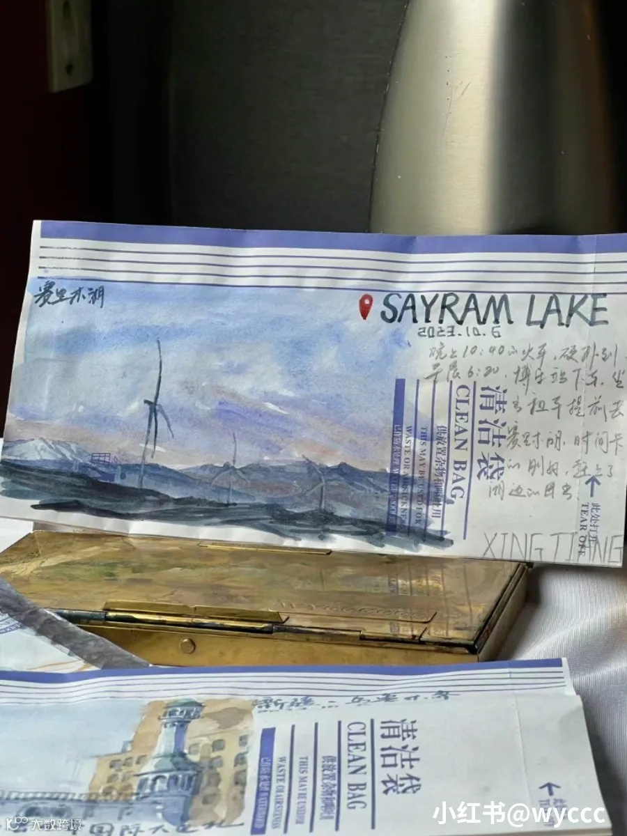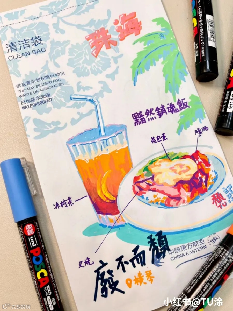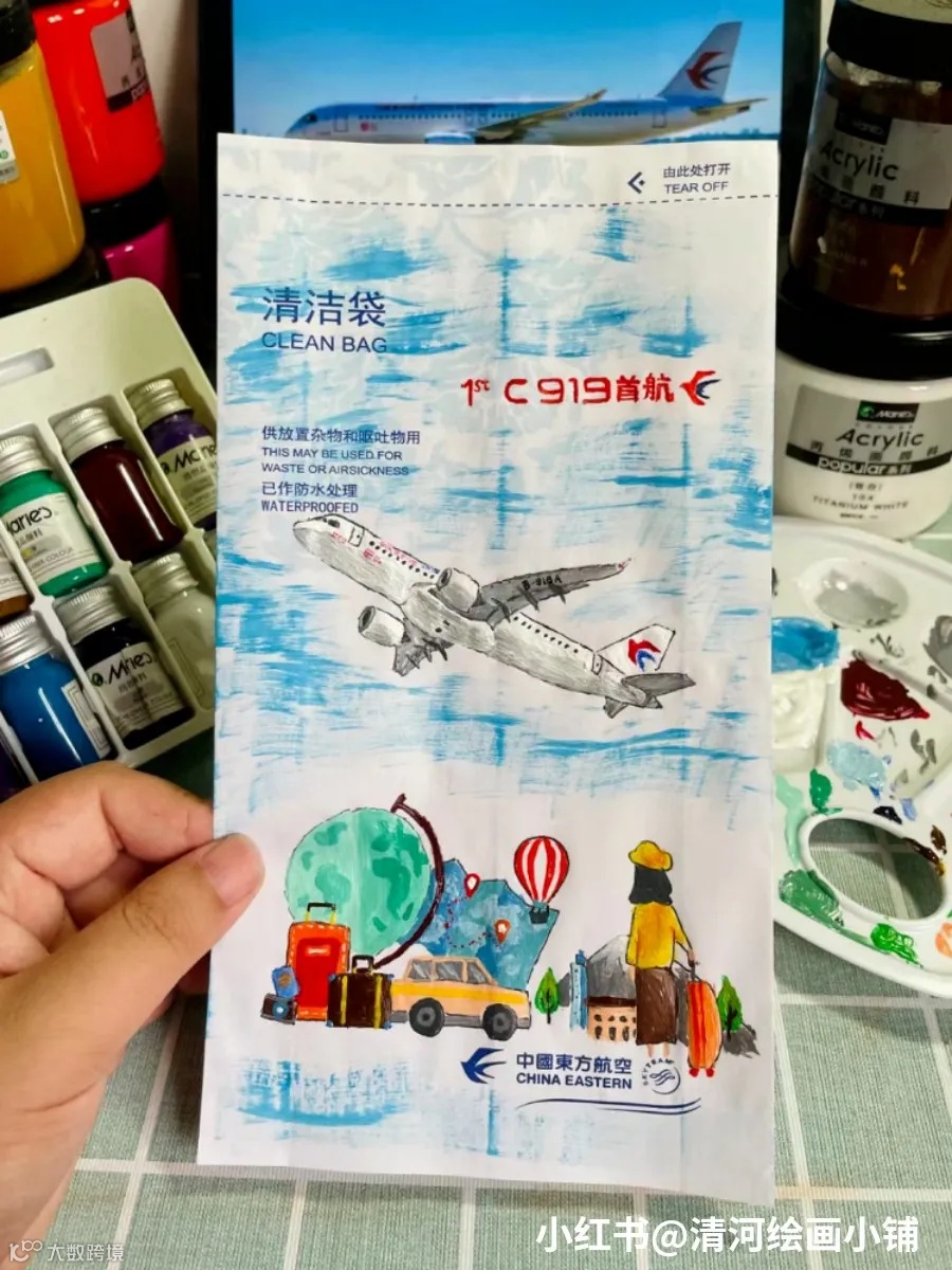 每个航司的清洁袋各有不同,而且经过一段飞行旅途后,清洁袋就可能变身成为艺术品,超有纪念价值!