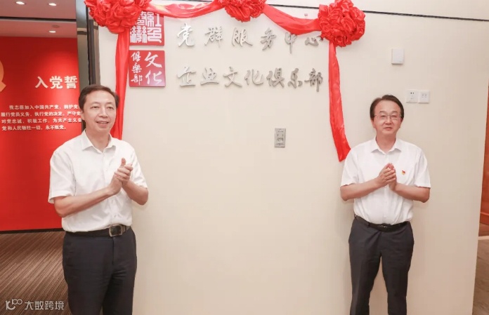 ▲集团党委书记、董事长,股份公司董事长毛剑宏,集团总经理、党委副书记、董事陶成波为“红色港湾”揭牌现场。