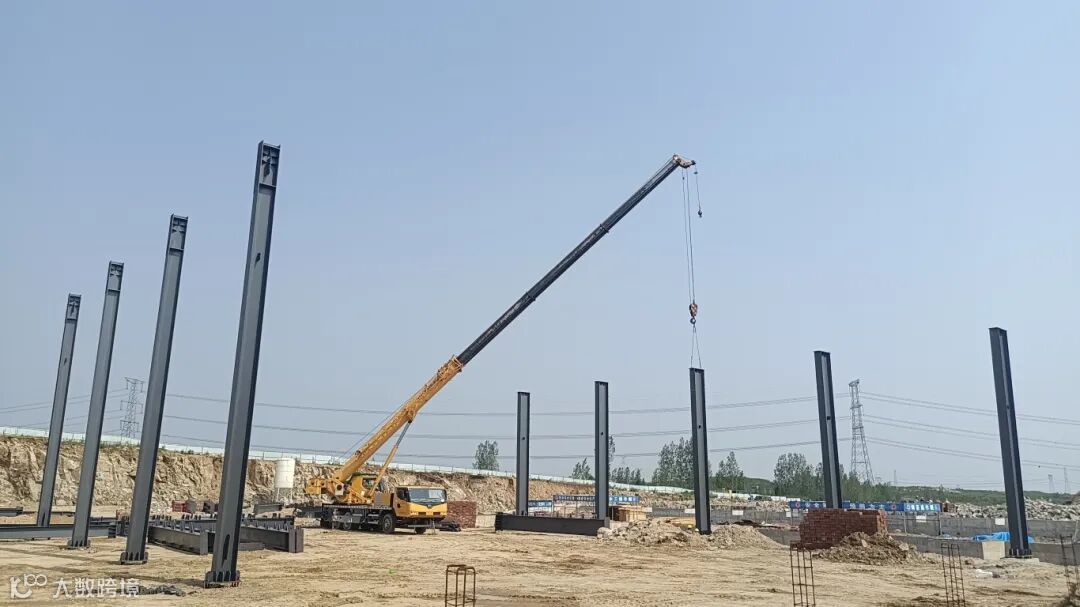 泰安综保区子项目泰安市公铁联运物流产业园基础设施项目一期首根钢结构立柱成功吊装