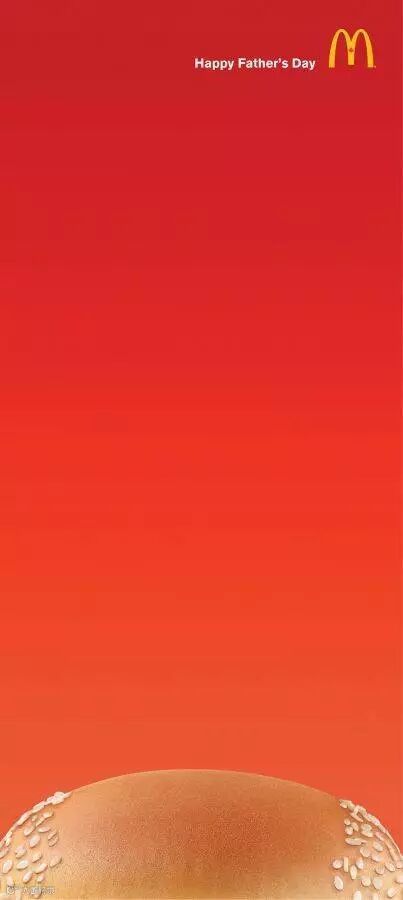麦当劳父亲节广告,把芝麻丢失的汉堡比作秃顶的脑袋,寓意“你的父亲早已不再年轻”。