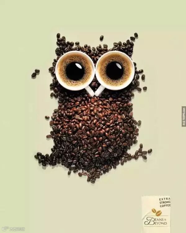咖啡的广告,喝了之后保准你晚上跟猫头鹰一样精神饱满。