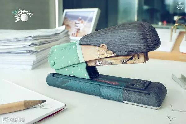 阿司匹林止痛药广告,在产品与消费者之间建立了一种情感联系。你是不是跟订书器上的小人一样,每天都面临着让人无比头疼的工作?