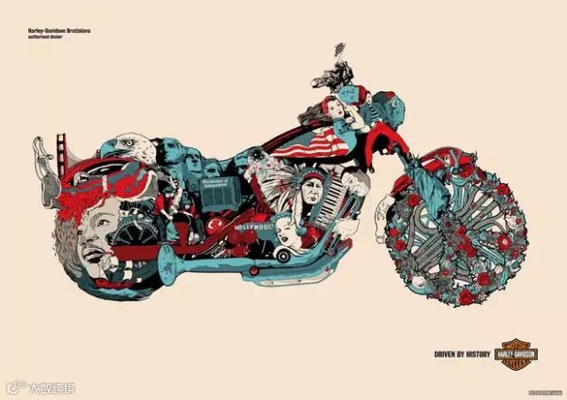 哈雷机车的广告,强调被历史与潮流驱动。