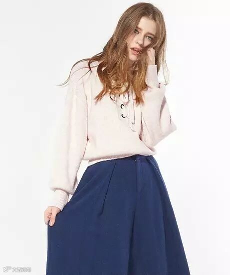 07 【甜美】柔软的针织,柔软的色泽,就连胸前的圆孔系带都自带软萌气息,像是一朵棉花糖一样的甜美可人。袖口和下摆的自然收紧,巧妙的塑造出空气感的弧度,少女味道满满。