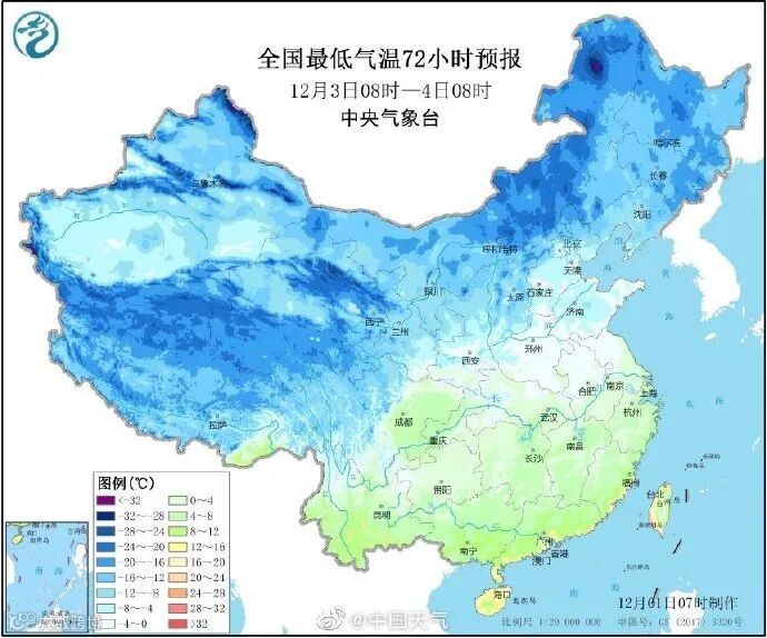 中央气象台预报显示,12月1日,我国雨雪天气发展增多,北方降雪范围明显扩大,西北、华北等地需警惕积雪、道路结冰对交通的不利影响;南方多地被阴雨笼罩,湿冷感明显。