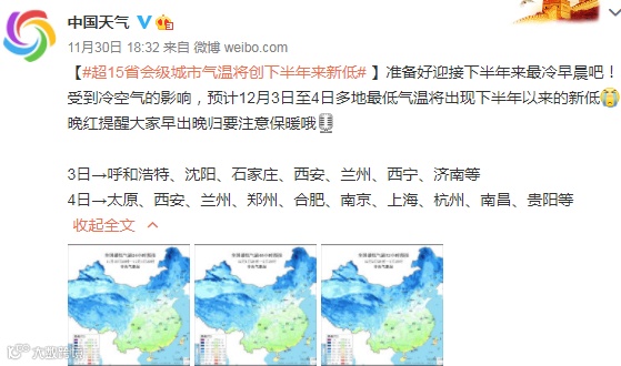预计雨雪天气过后,3日起中东部多地气温还将再创下半年以来的新低。