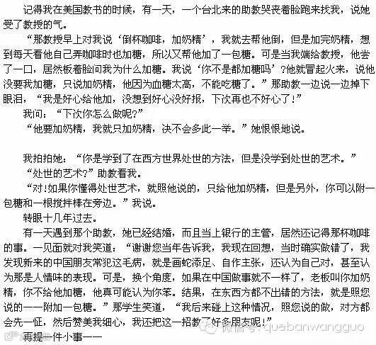我被弄得一怔一怔,但是不能不赞赏那职员的态度,因为他严格遵守了“下楼时主人先下,上楼时客人先上”,以及“对熟悉的地方,客人走在前面,对生疏的地方,由主人在前面带路”原则。使我对那公司,一开始就有了“他们做事会很严谨”的好印象。