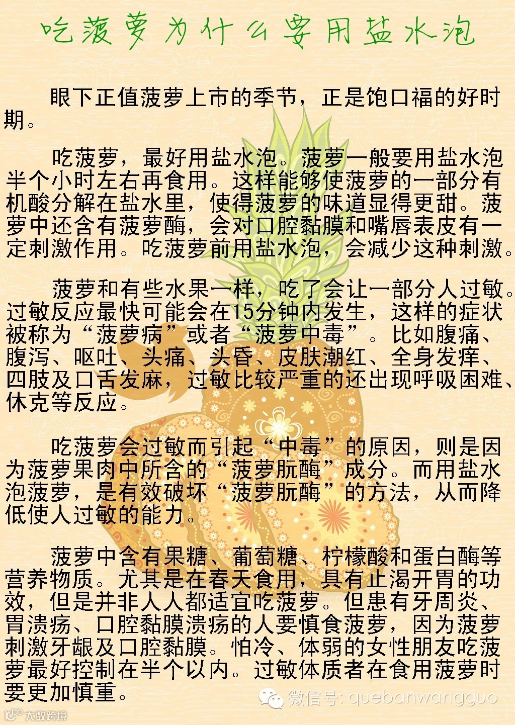 导读:吃菠萝为什么要用盐水泡?你不知道就亏大了!