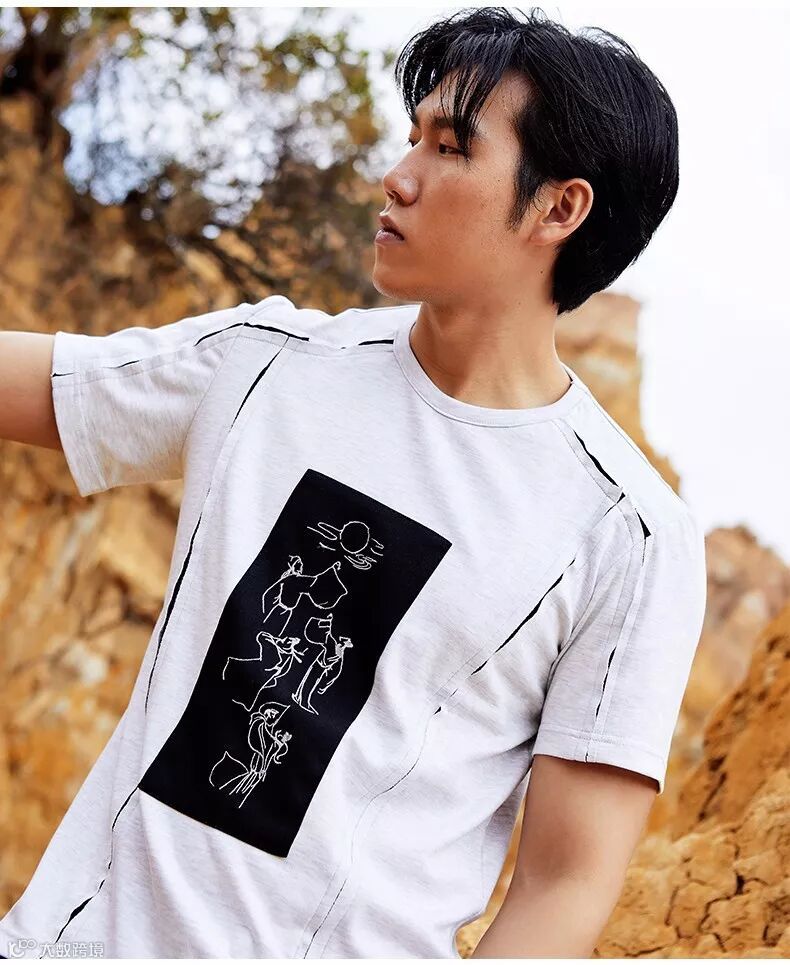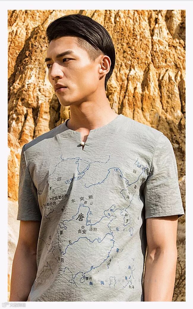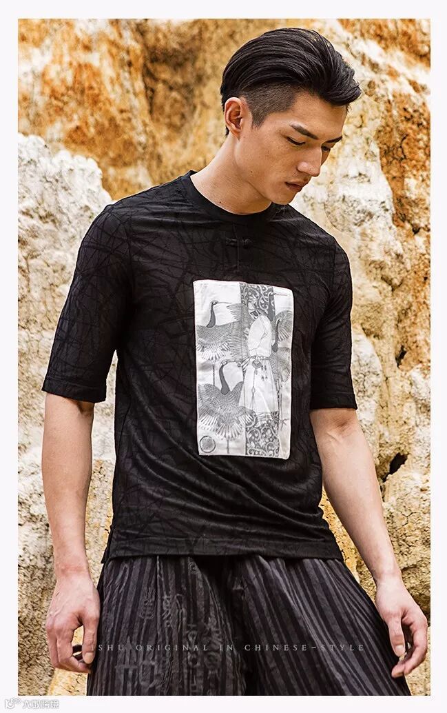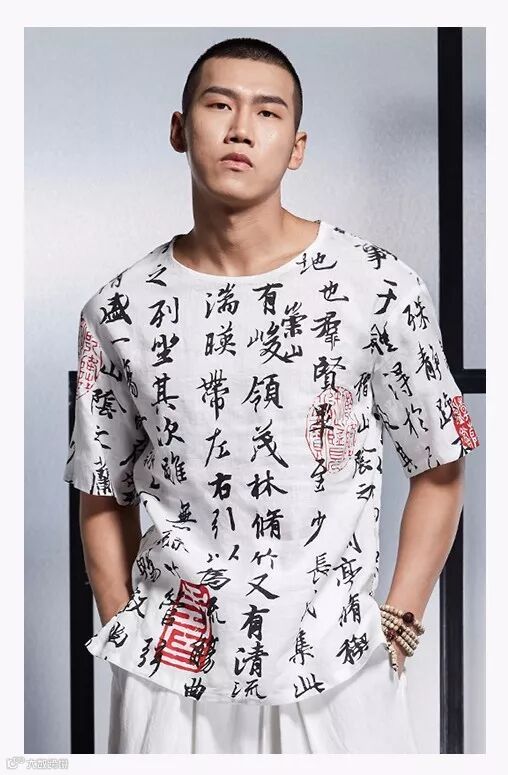 中国风原创 短袖文字印花水墨文字 亚麻面料