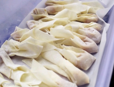 Tips:馄饨皮折法如图所示