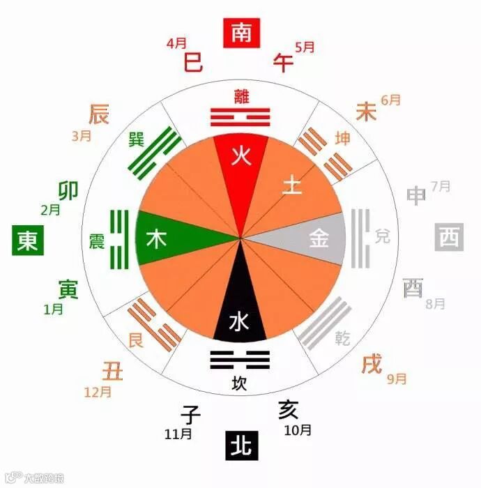 五行学说里,南方属于火,东方属于木,北方属于水,西方属于金,中央属土,协助金木水火的平衡。