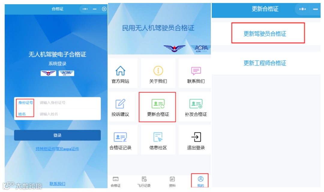 即日起可登录“云合格证”微信小程序进行合格证更新,更方便快捷。(教员只能通过报名考试复证),翰动无人机贴心整理的更新方法,快收藏起来!