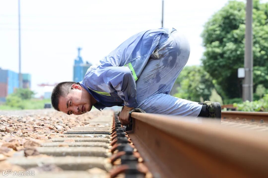 为确保铁路运输的安全稳定,铁司线路工俯身卧在滚烫的轨道上,凝目而视,检查铁轨水平度,找出坑洼,并指挥起道机放置位置和起道高度。