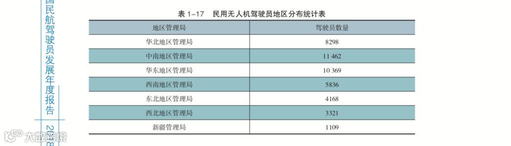 按地区划分的无人机驾驶员执照颁发数量如表 1-17 所示。