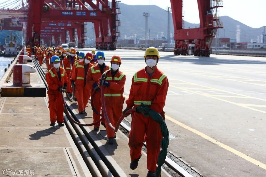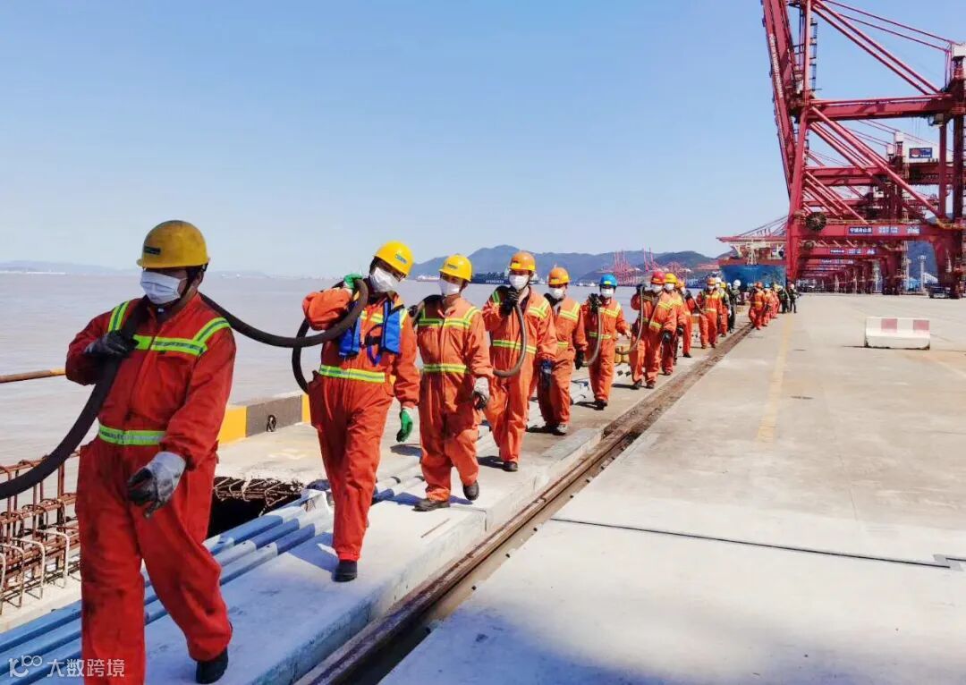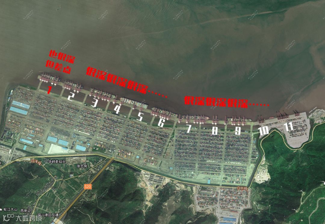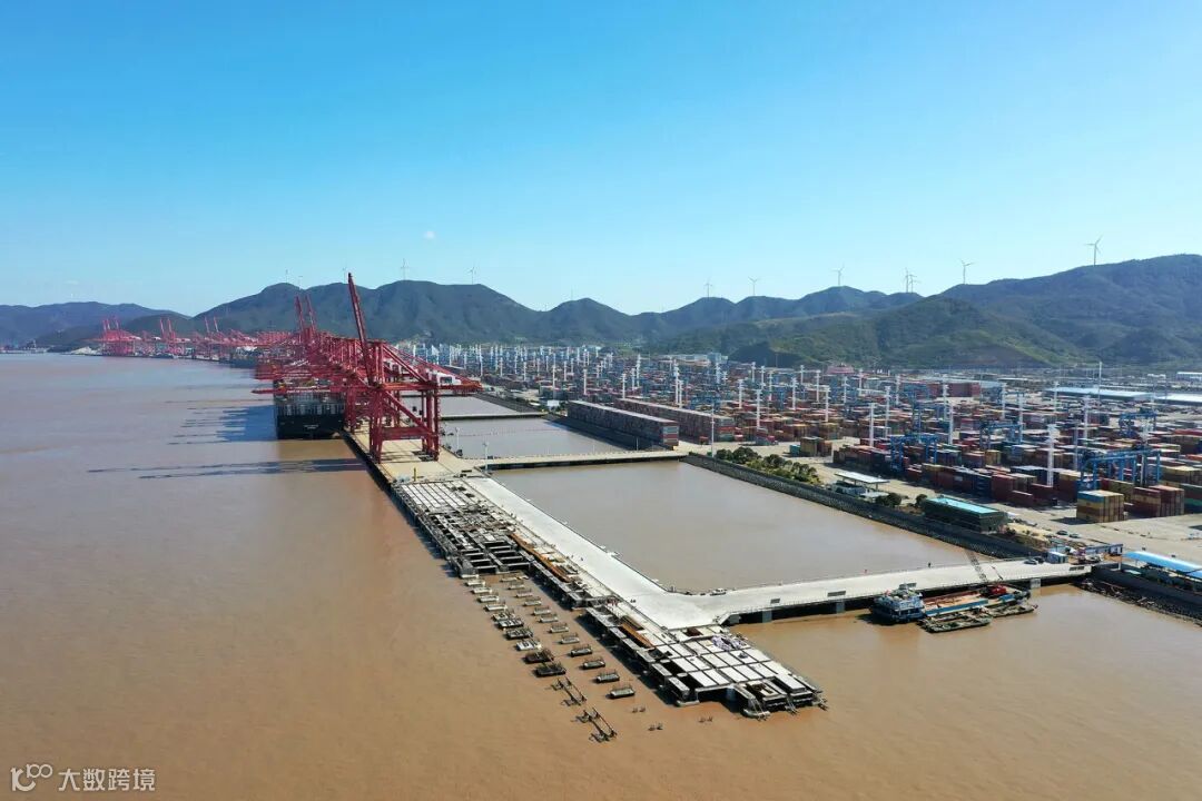 宁波舟山港穿山港区集装箱码头是全球最大的单体集装箱码头之一,2019年完成集装箱吞吐量1035万标准箱。该码头目前共有10个集装箱泊位,岸线长约3410米,配有桥吊45台,可满足目前全球最大集装箱船舶的作业。