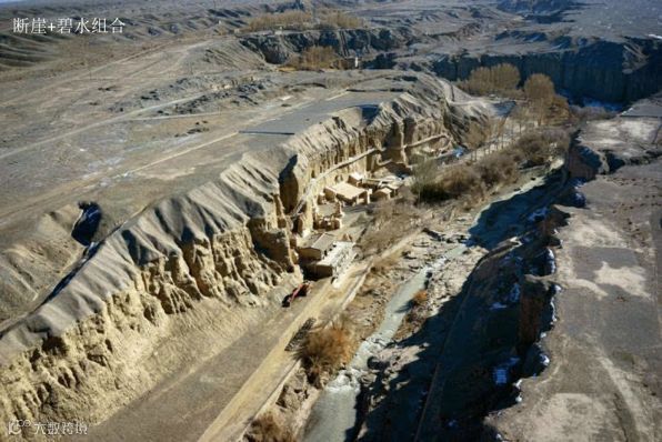 断崖+碧水组合,是所有大型石窟所在地都必备的地貌条件。因开凿石窟是一个庞大的工程,需要团体作业—开凿岩壁者、搭建架子者、调制颜料者、画工,缺一不可。而且这一众人员的日常生活,离不开充足的水源。因此,“断崖在戈壁上形成裂谷,中间一条碧水流过”,成为了相伴石窟而生的壮美景观。