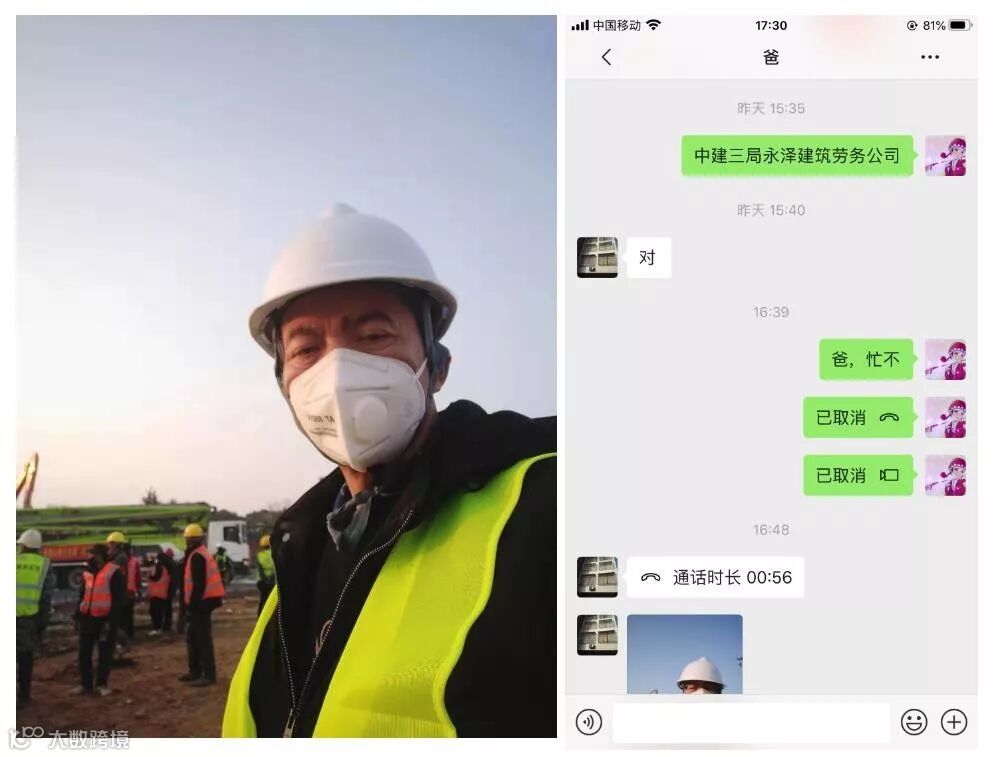 火神山医院原计划需要8天建成,但所有的施工人员都在跟时间赛跑,争取6天内完工。父亲现在很忙,因此常常接不到电话,有时他会传回一条微信或者一张施工现场的照片,在繁忙的工作中向家人报个平安。