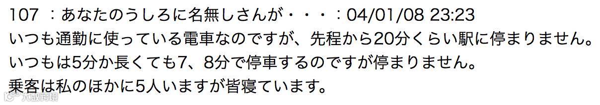 起因是一位署名叶纯(はすみ)的网友在搭乘电车时,来到一个奇怪的车站,她感到紧张,于是在论坛上发帖(以下皆为基于网上的原文进行的翻译,“你身后的无名氏”为2ch默认匿名留言ID):