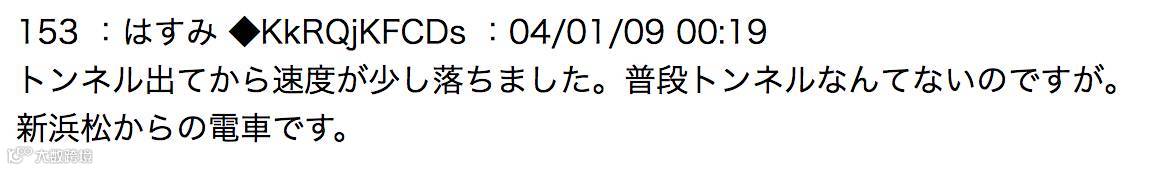 “出了隧道之后好像速度放慢下来了。不过平时根本没有隧道啊。车是从新滨松方向过来的。”