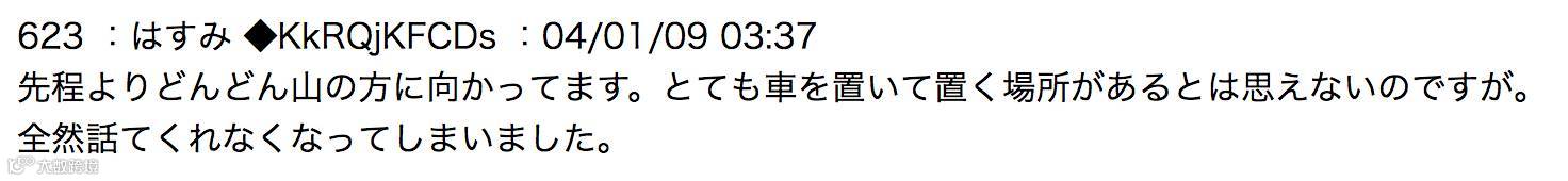 这之后一个月,一个叫叶纯的ID发帖称自己当时被奇怪的男人用车载到森林里,并被另外一个男人解救,一睁眼已是七年后,自己正处于附近的车站前面。不过,因为2ch的ID可以随便起,所以也无法判断这个叶纯和七年前发帖的是否为同一人。