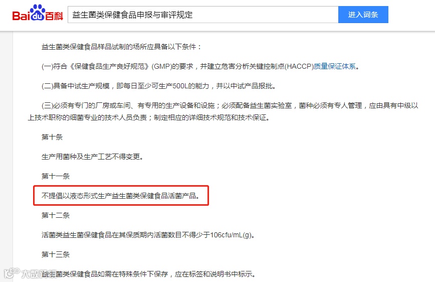 更重要的是,《益生菌类保健食品申报与审评规定》明确指出,不提倡以液态形式生产益生菌类保健食品活菌产品。