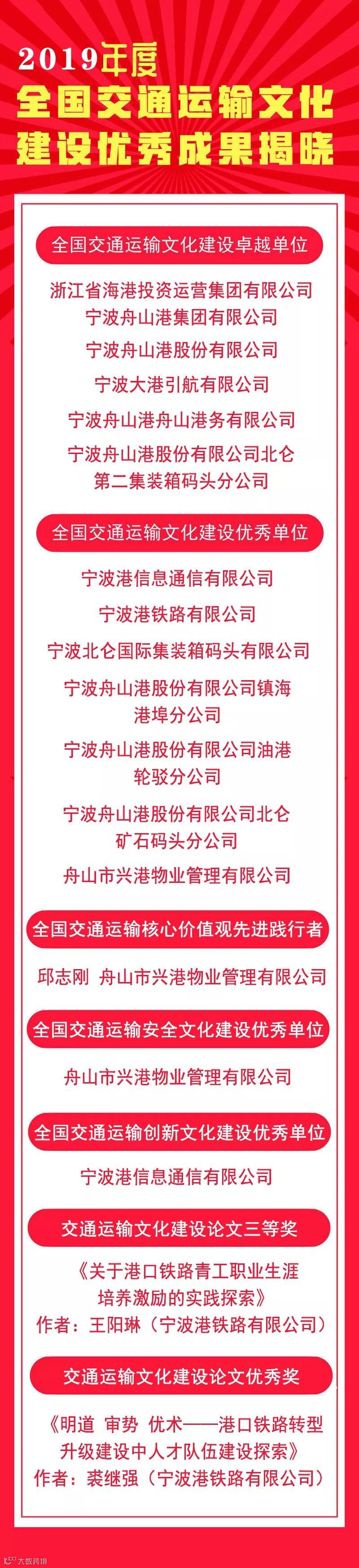 11月8日,中国交通企业管理协会公布了2019年度全国交通运输文化建设优秀成果,集团第9次荣获“全国交通运输文化建设卓越单位”称号。