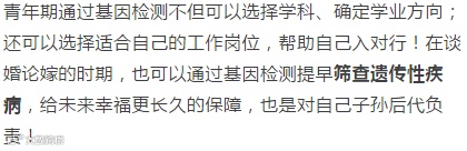 儿童选择《天赋基因检测》,不仅可以掌控疾病易感基因,为一生的健康提供保证,还能分析其性格、爱好、脾气秉性、成长风险等。让孩子健康成长的同时,定向发展,少走弯路,给孩子一个精准的未来!