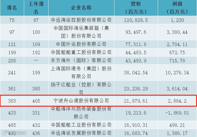11家中国上市港航船舶企业入围500强榜单