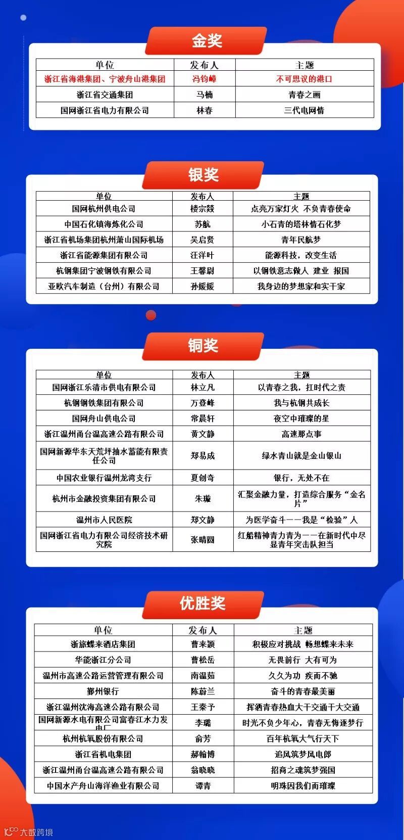 本次志·青梦“畅想智慧未来”青年说比赛由共青团浙江省委、浙江省国资委主办,集团承办。共青团浙江省委党组成员、组织部部长盛乐,共青团浙江省委基层工作部副部长(主持工作)楼斐滢,宁波舟山港股份有限公司党委副书记、纪委书记、工会主席、董事金星出席比赛并为获奖青工颁奖。