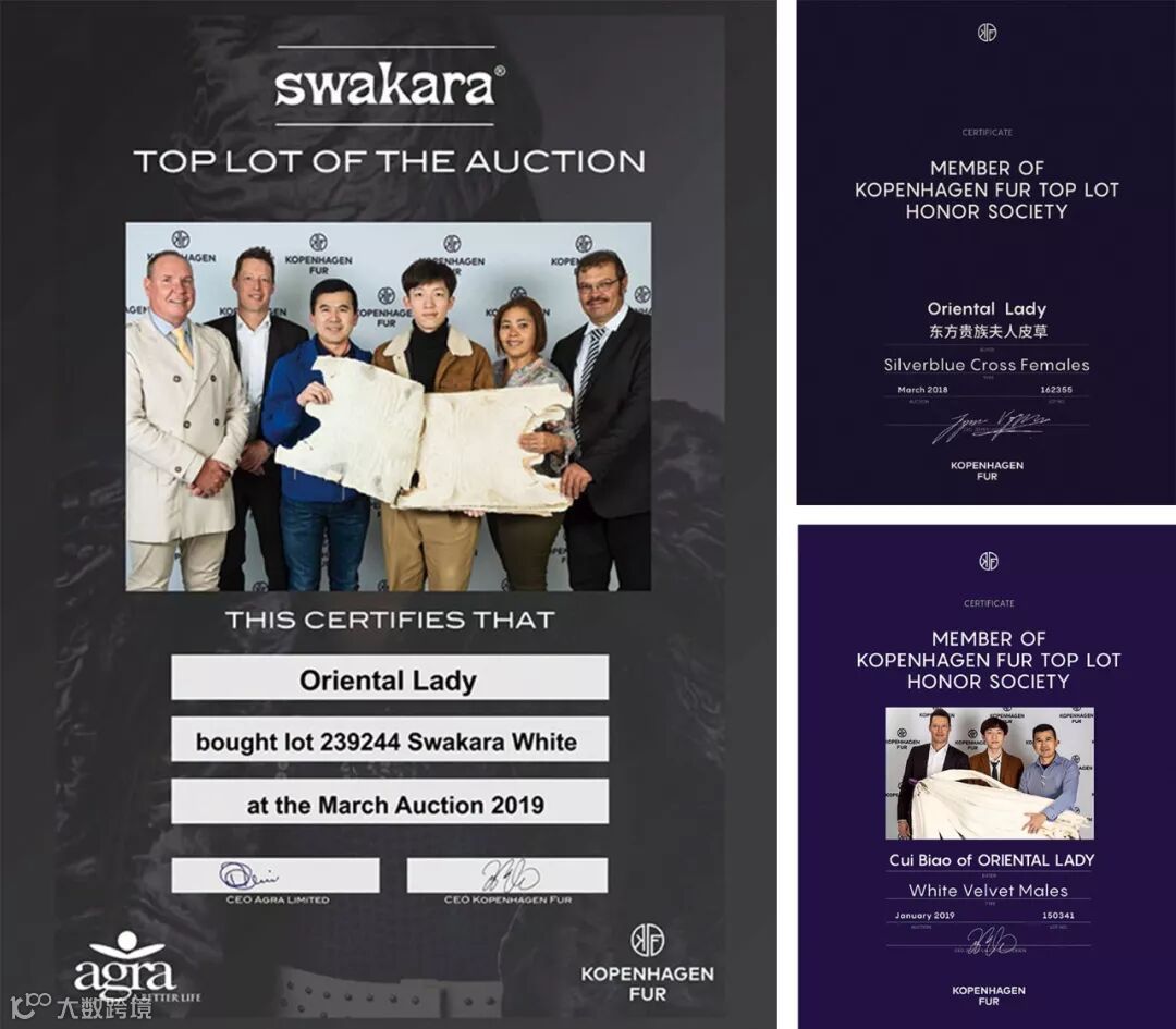 东方贵族夫人在2017-2019年多次竞得哥本哈根裘皮拍卖行及北美裘皮拍卖行头把皮。通过竞拍头把皮传递了东方贵族夫人对品质的严格把控,在不断提升自身品牌核心竞争力的同时,也更好地增强东方贵族夫人在整个皮草行业的影响力。