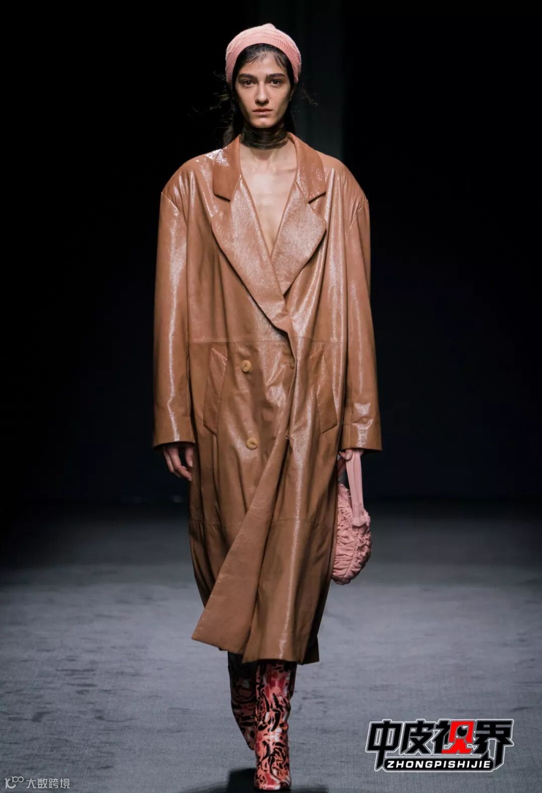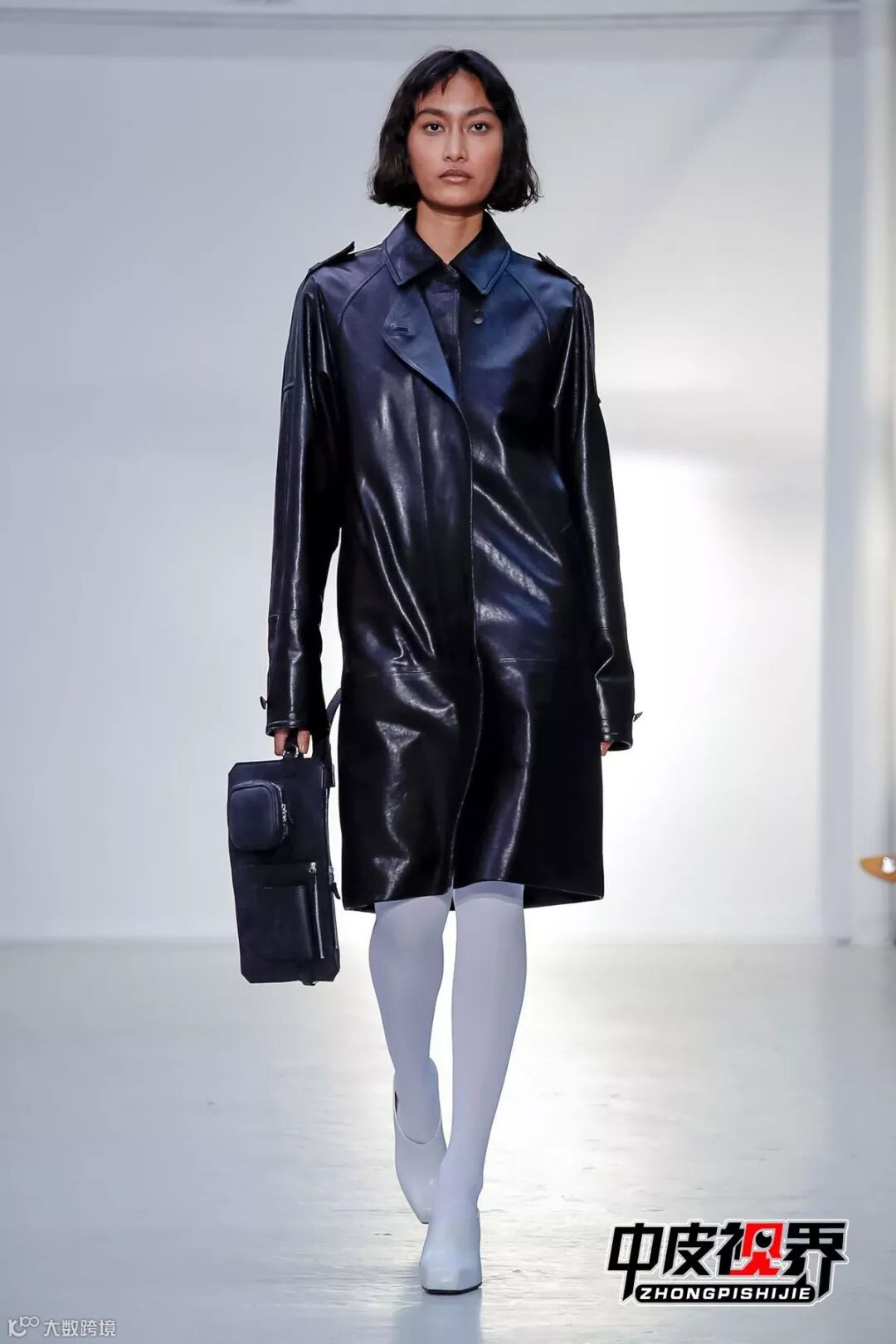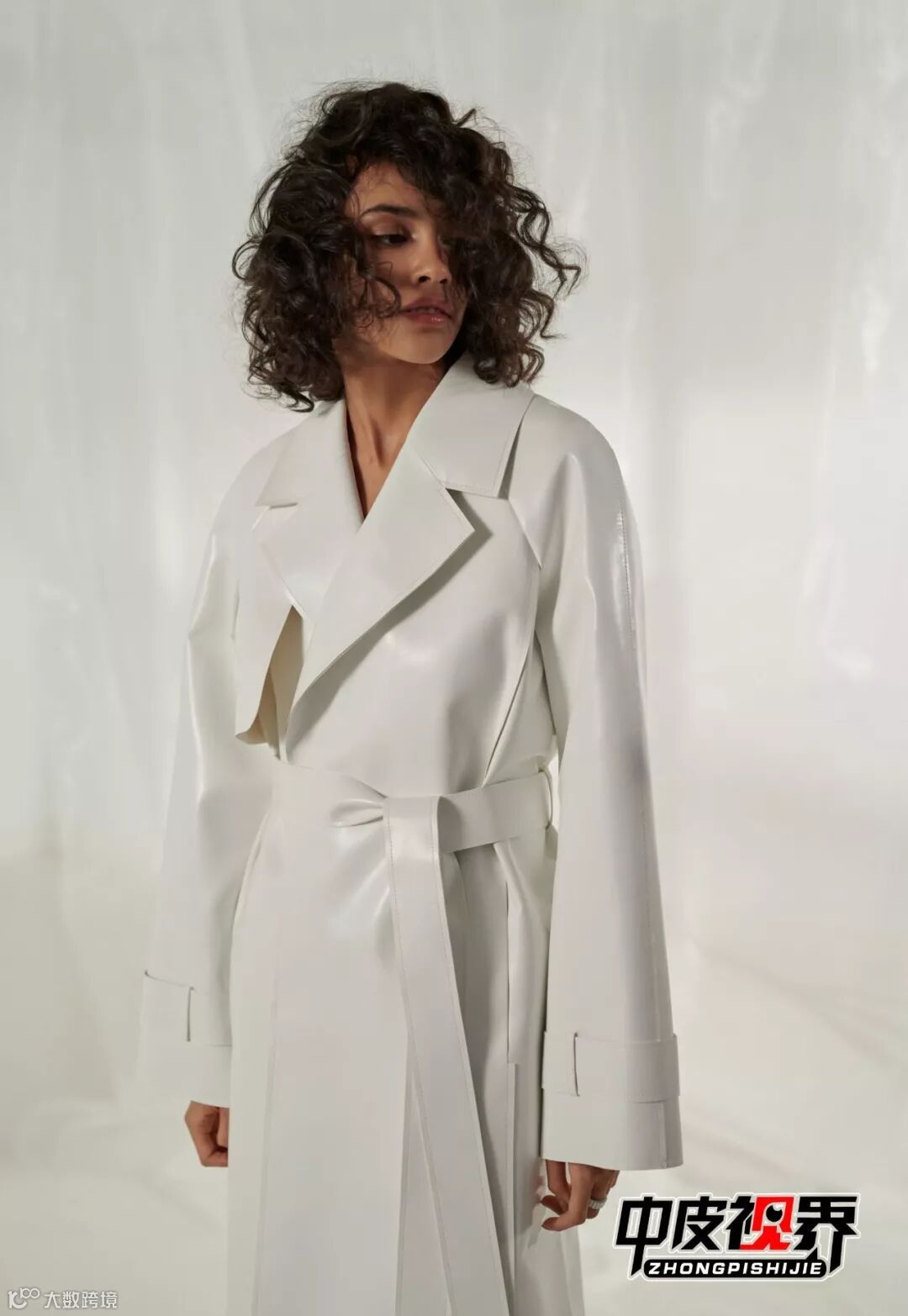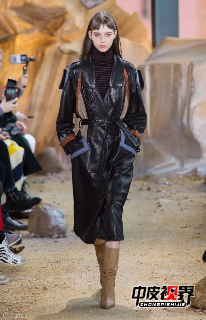 黑色皮风衣自带一种酷酷的帅感,而皮革的质感又为传统风衣增添了几分摩登干练的味道。