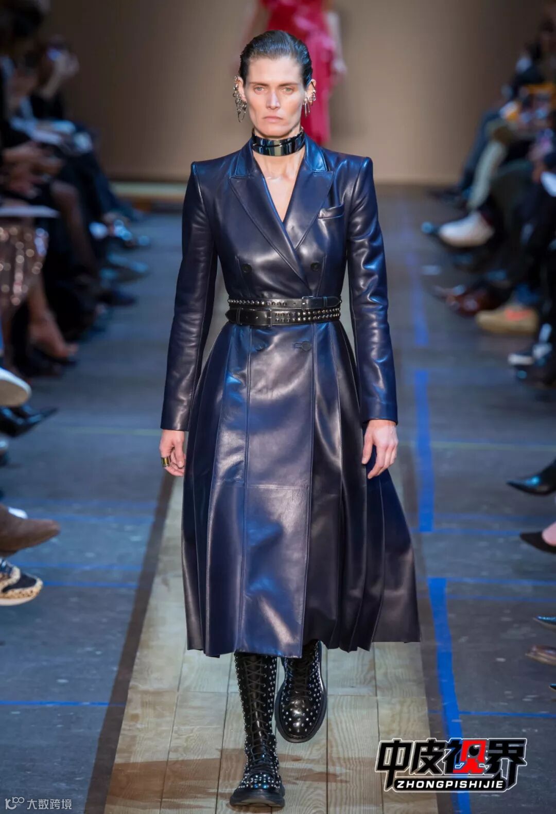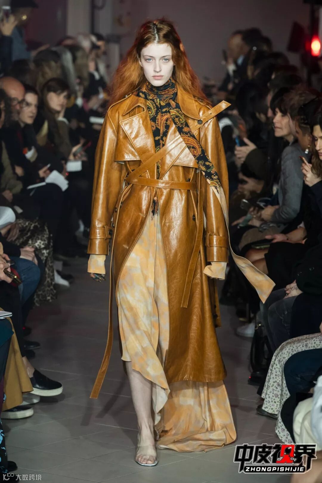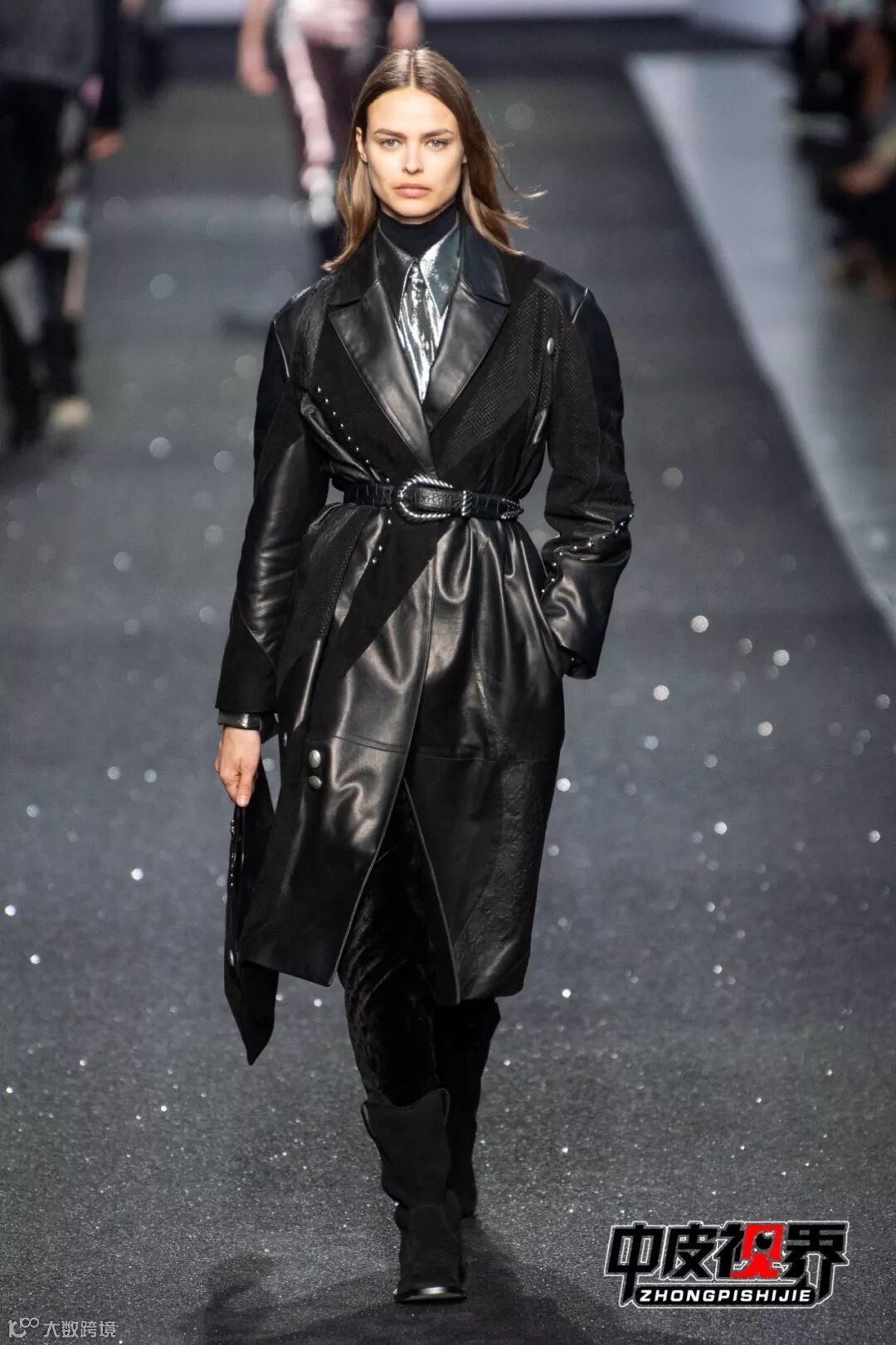 黑色皮风衣自带一种酷酷的帅感,而皮革的质感又为传统风衣增添了几分摩登干练的味道。