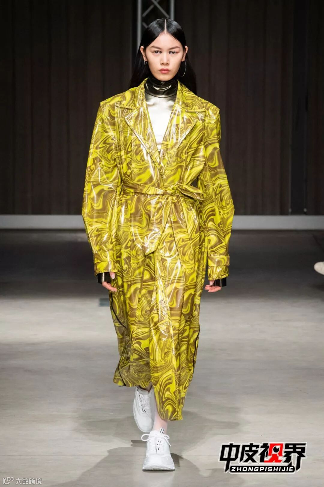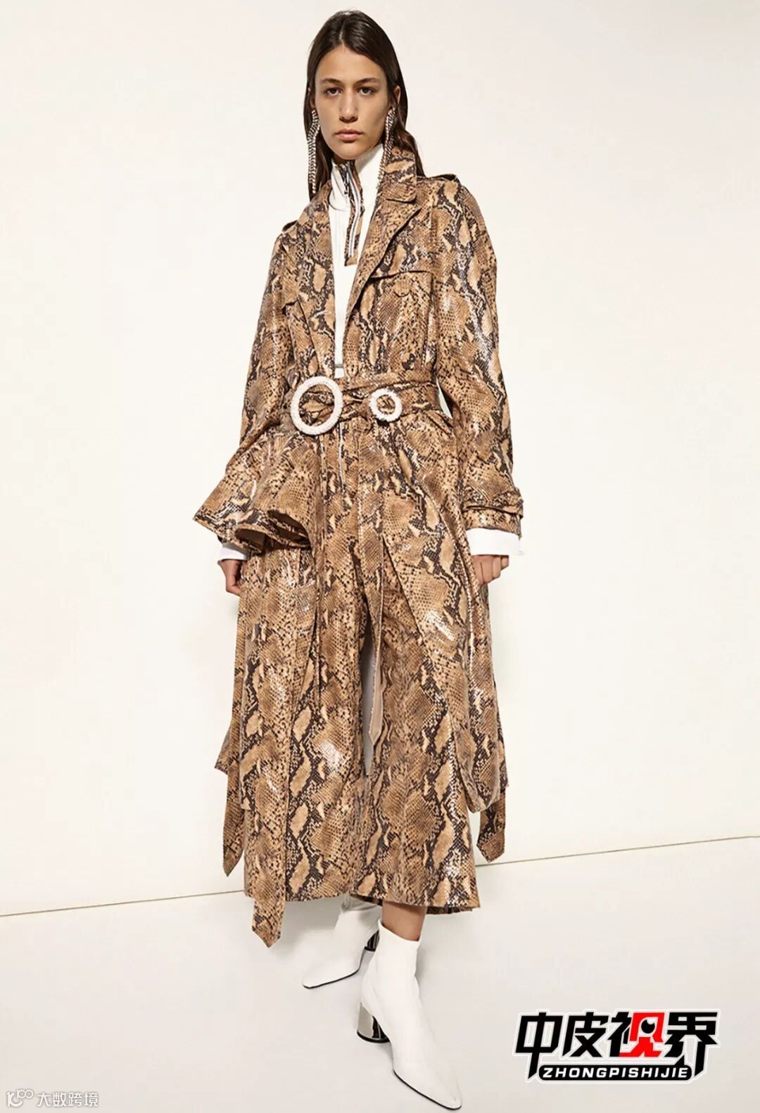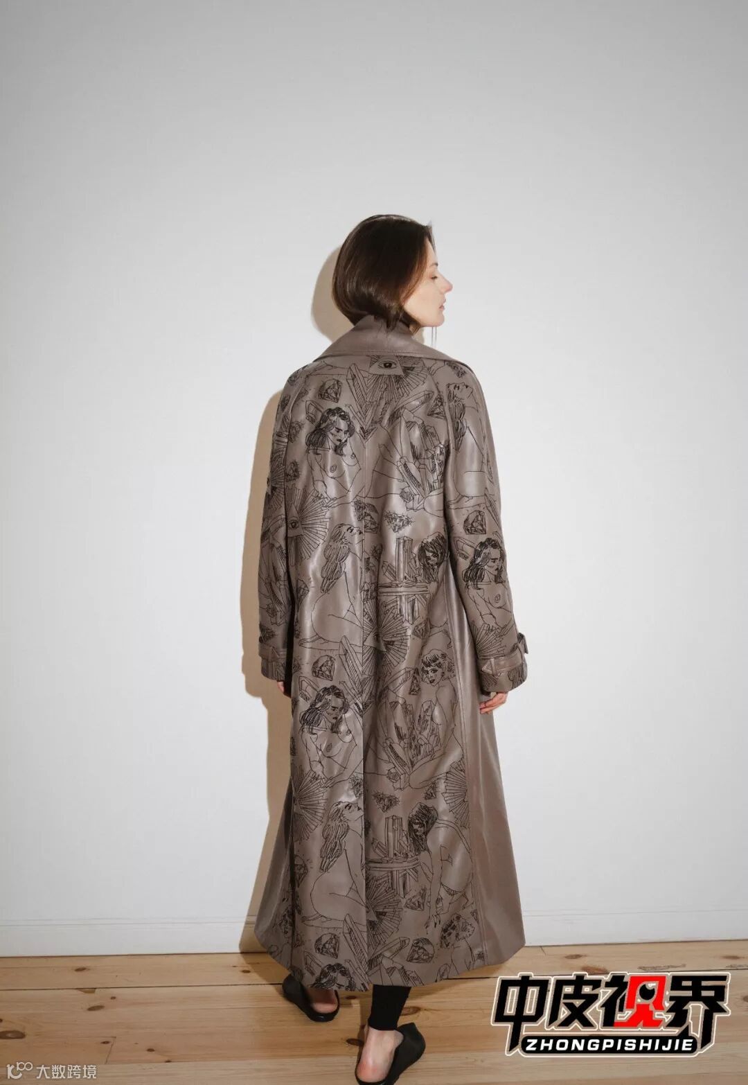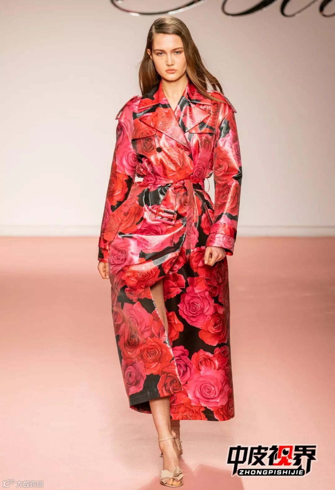 如果说那些黑色皮风衣自带酷酷的女间谍气息,那么带有细节感的印花皮风衣则更加可爱有趣。