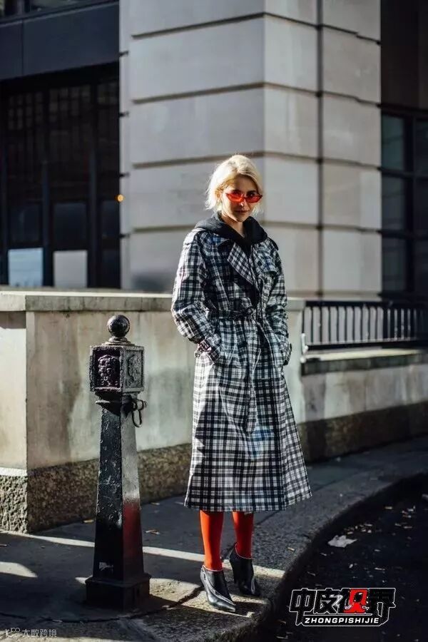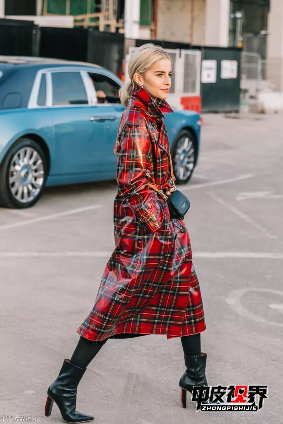 复古的格纹让皮风衣多了几分英伦风情,彰显出低调的高级感。