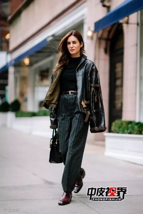 因换季着装而衍生出来的皮革穿搭,是时尚达人们的街拍必备单品。皮革对于女性的诱惑力是无法用语言来描述的。