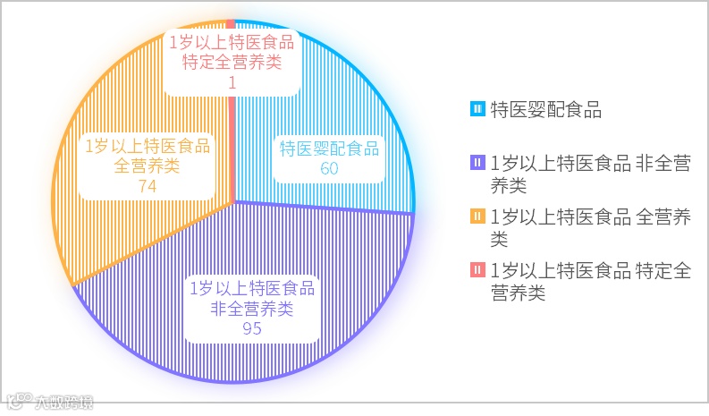 已获批的230款特医食品中,特医婴配产品60款,1岁以上特医食品170款(包括非全营养类产品95款,全营养类产品74款,特定全营养类产品1款)。