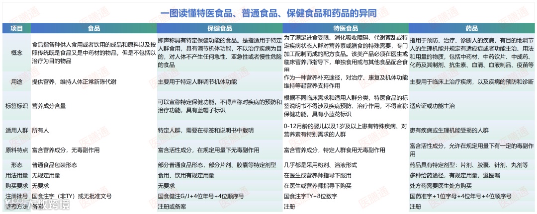 总的来说,特医食品具有“医疗”属性,却属于“食品”范畴,然而又与普通食品、保健品不是一类,具备自己的一套监管体系,这就是它【特殊】的地方。