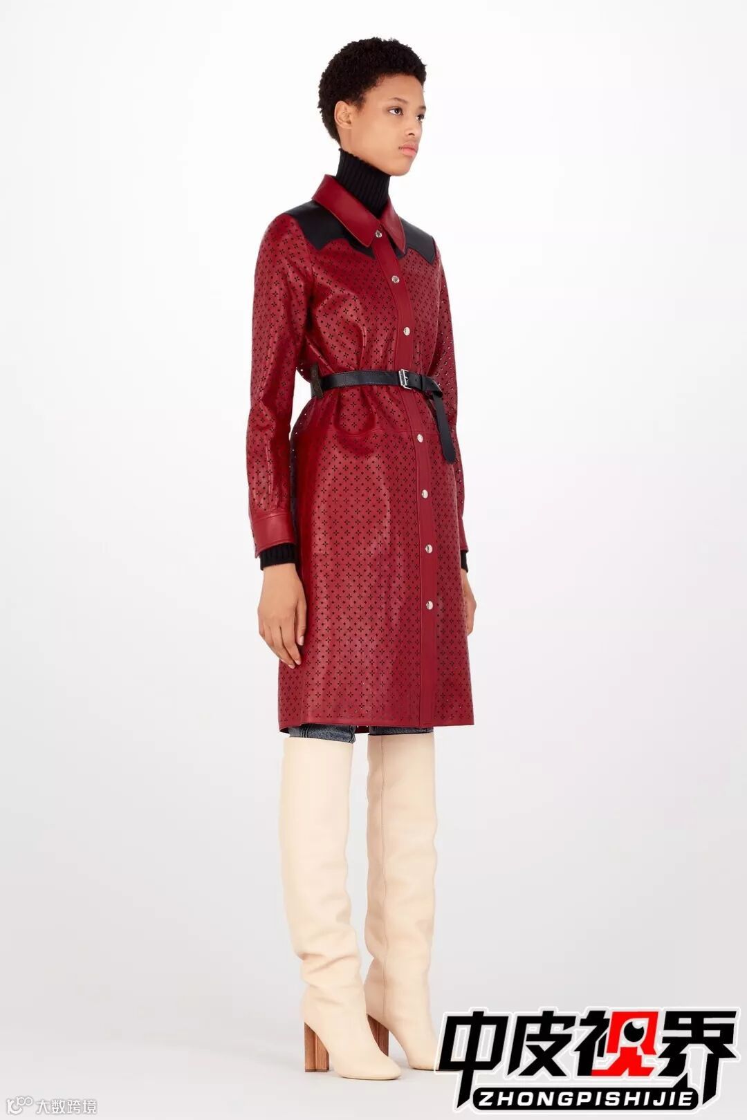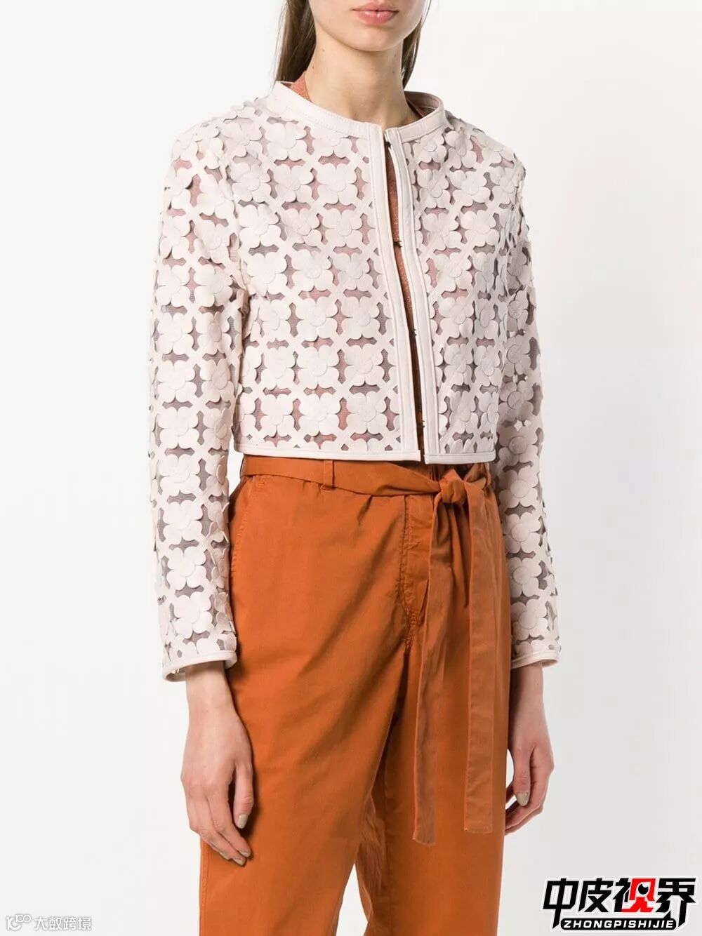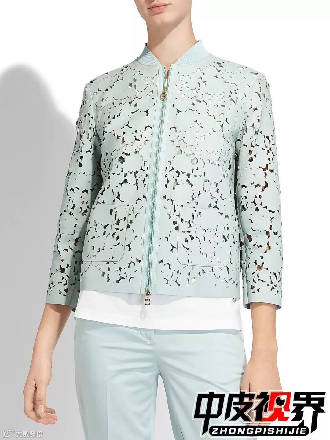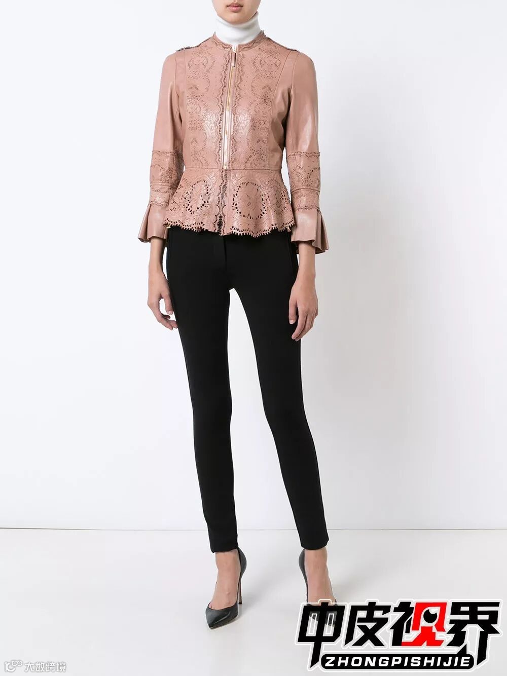 大面积大块激光切割镂空使原本厚重的皮衣瞬间减轻重量变得轻盈,无论内搭什么颜色的单品外面的镂空皮衣都会凸显出来增加层次感。