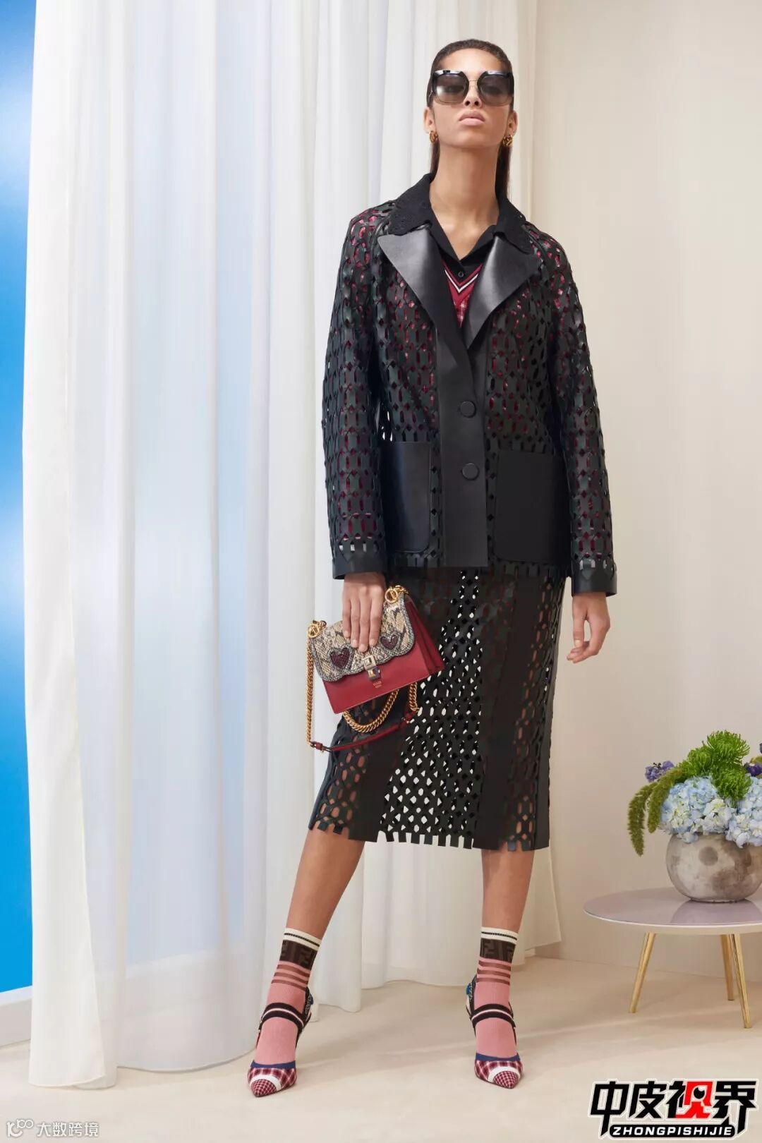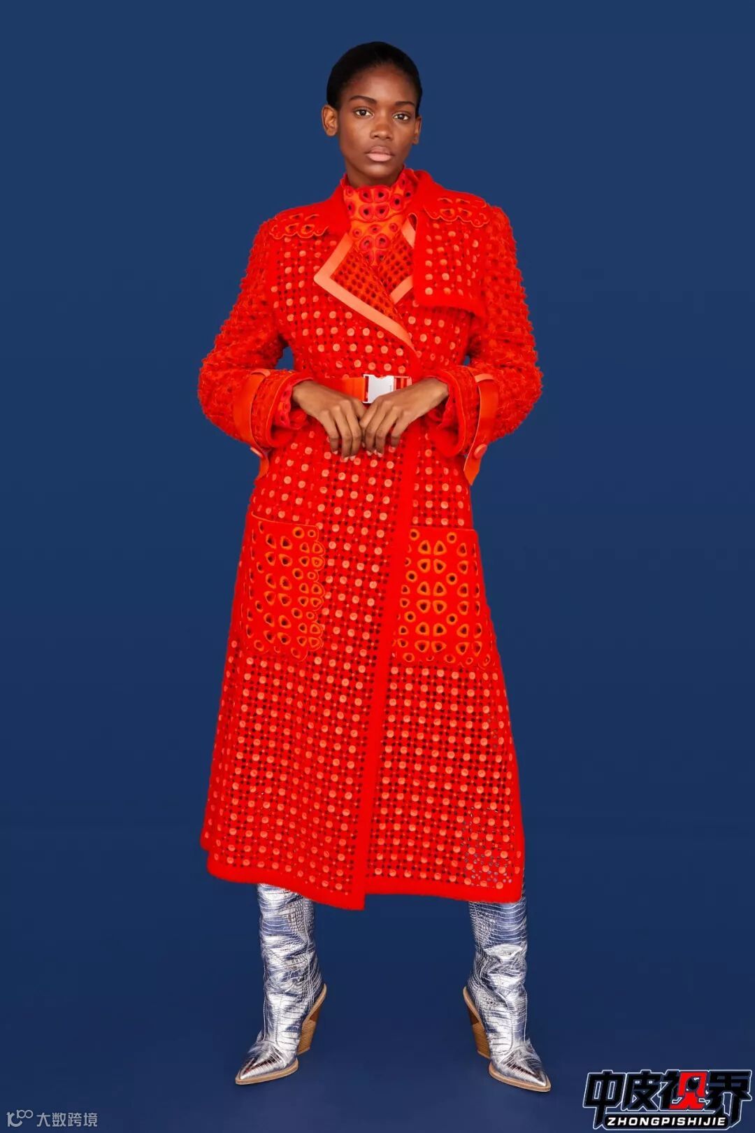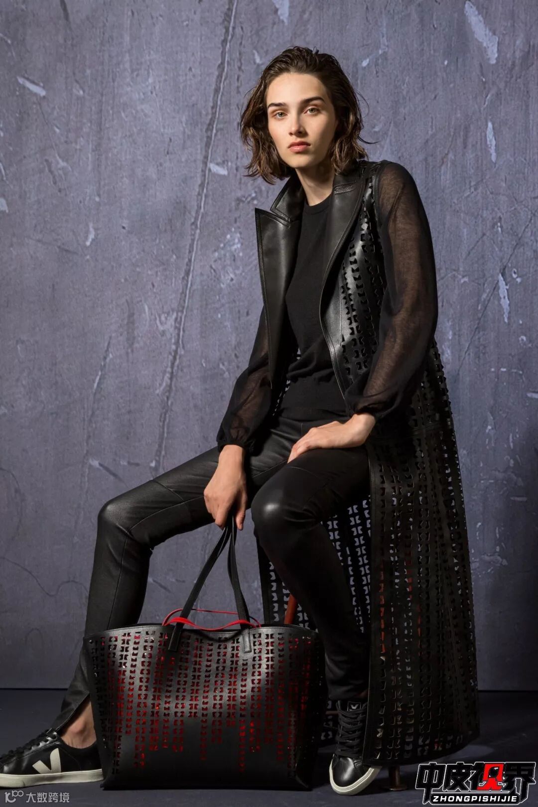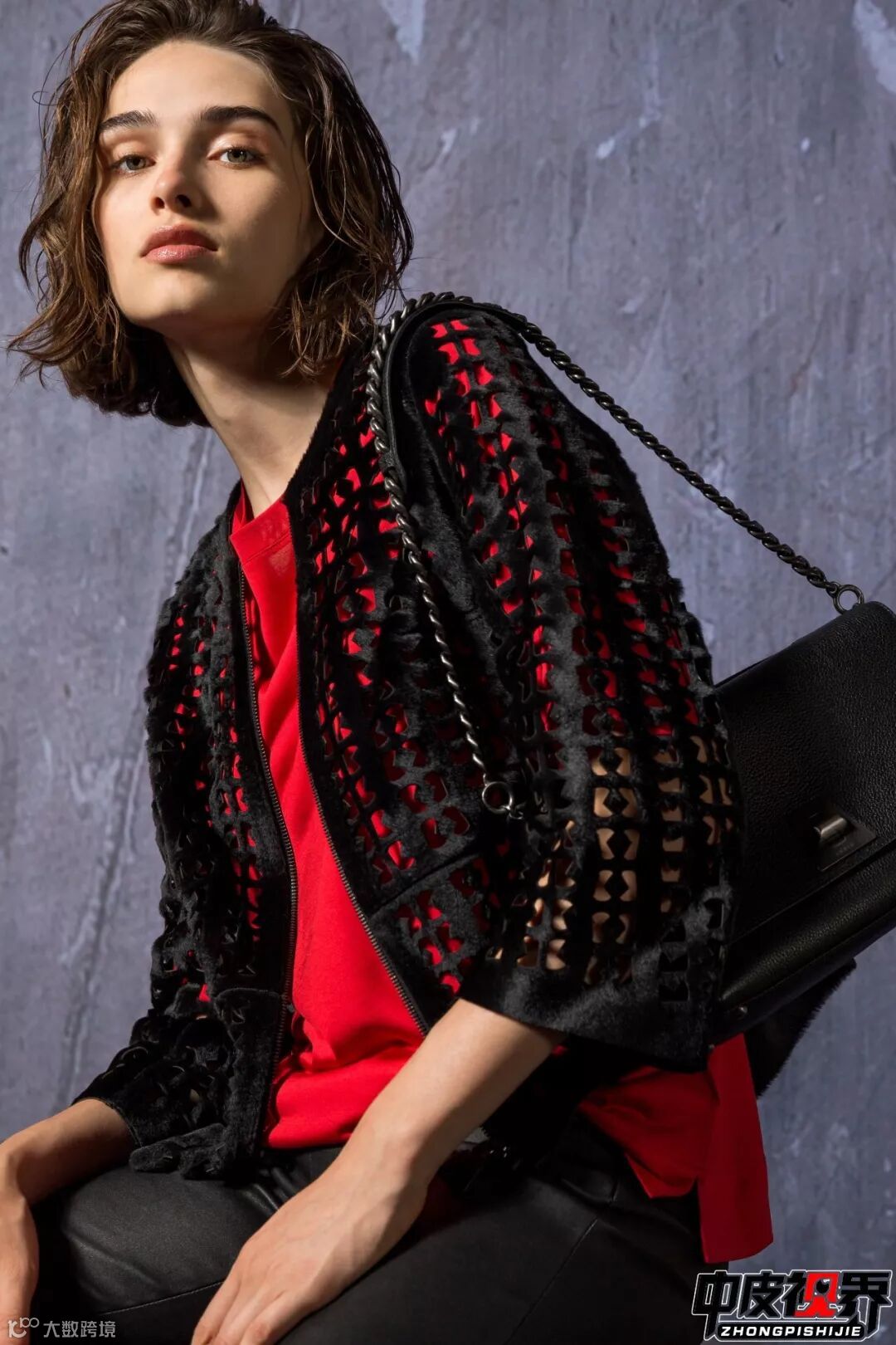 大面积大块激光切割镂空使原本厚重的皮衣瞬间减轻重量变得轻盈,无论内搭什么颜色的单品外面的镂空皮衣都会凸显出来增加层次感。