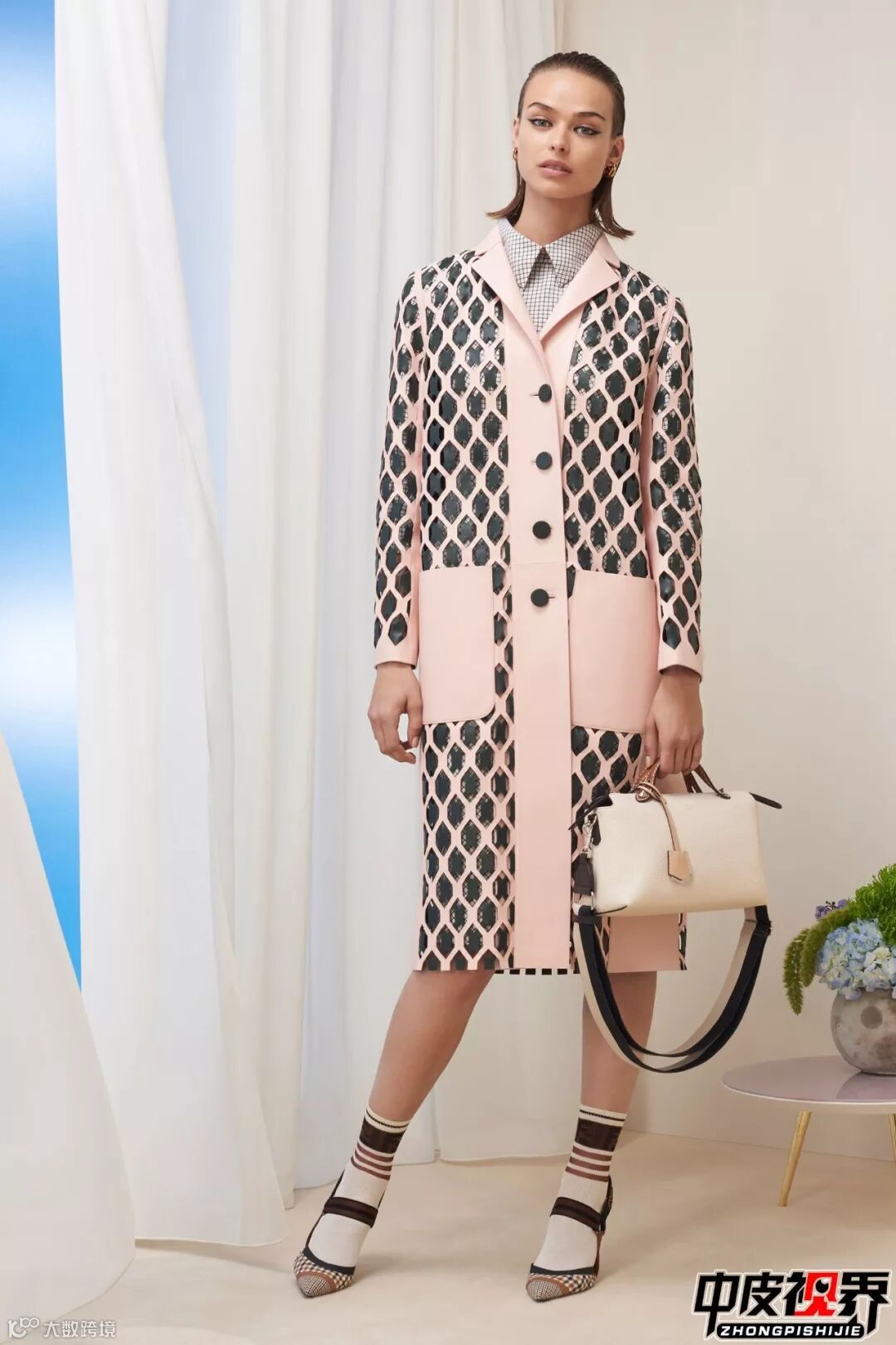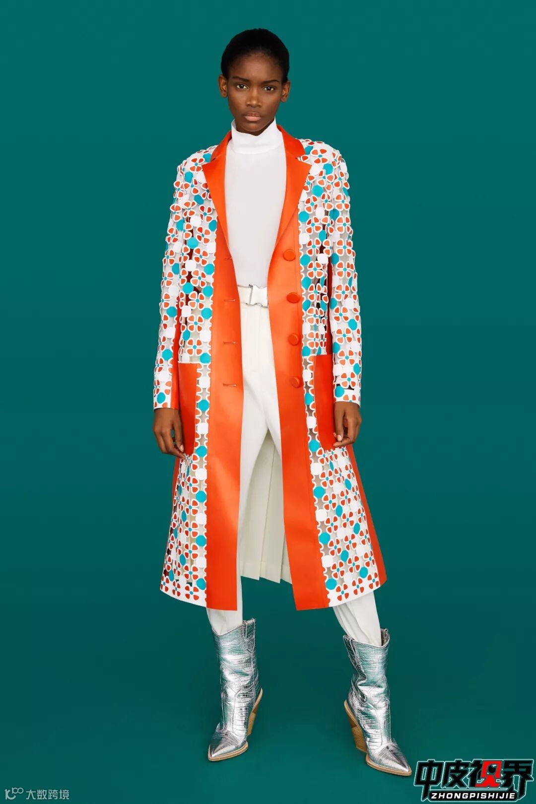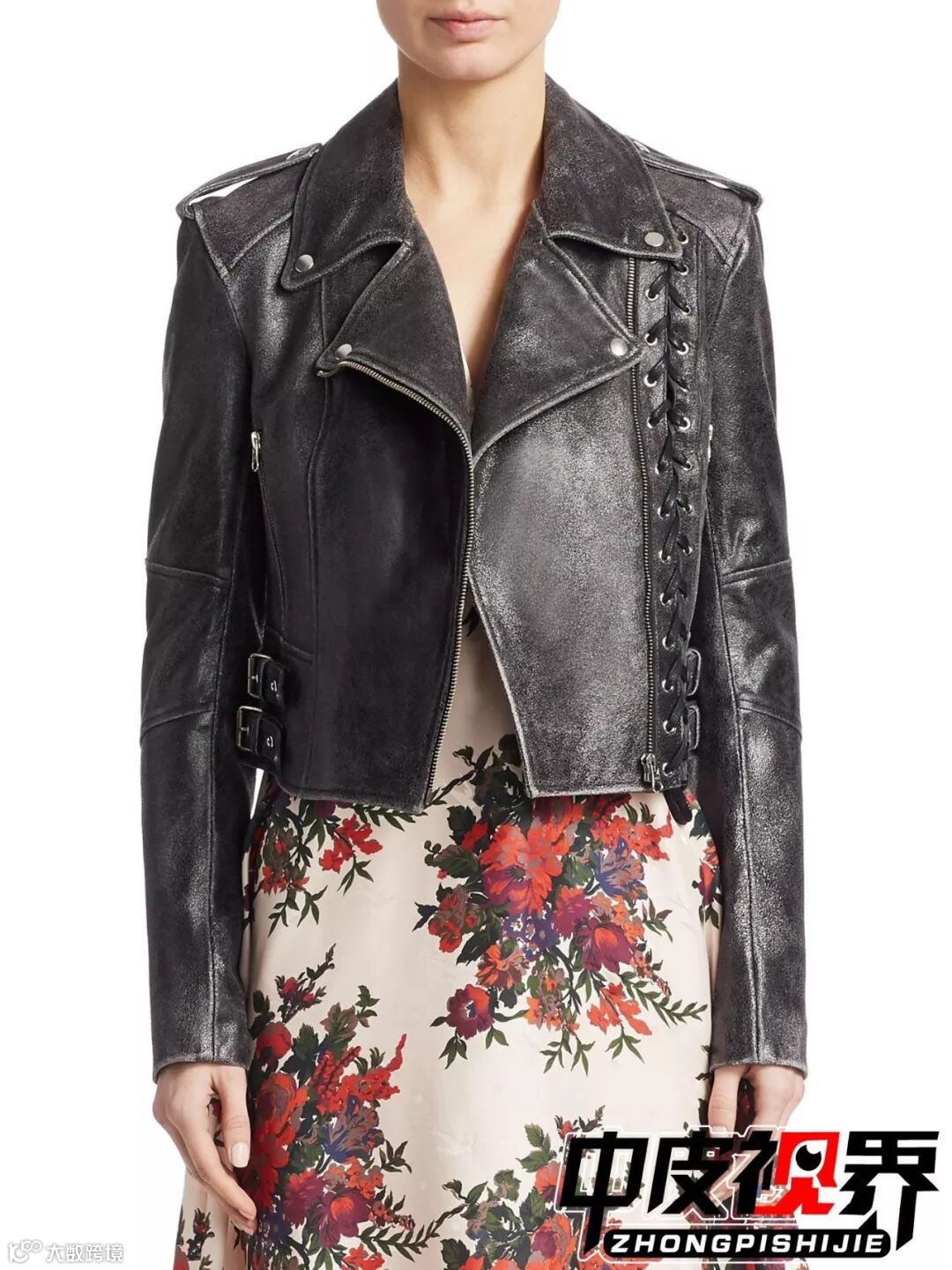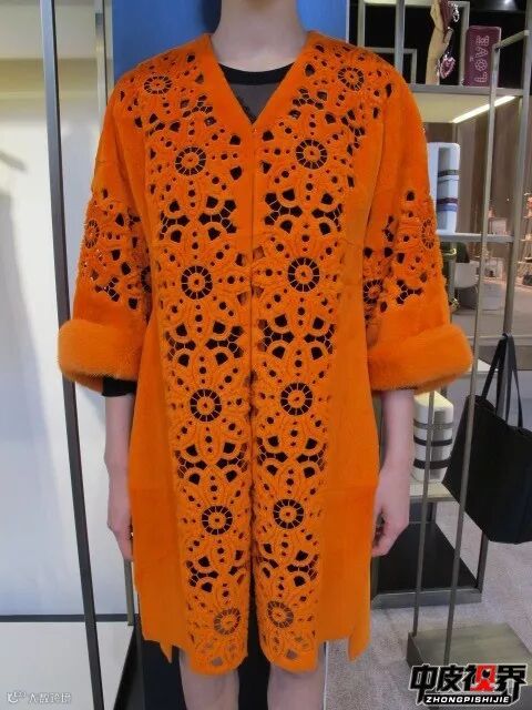 不同花型的切割工艺不同,越密集的图案花型切割在工艺上越复杂以及精细,这种花卉切割皮衣很是新颖并且有丰富的视觉感受,给人一种很饱满的感觉。