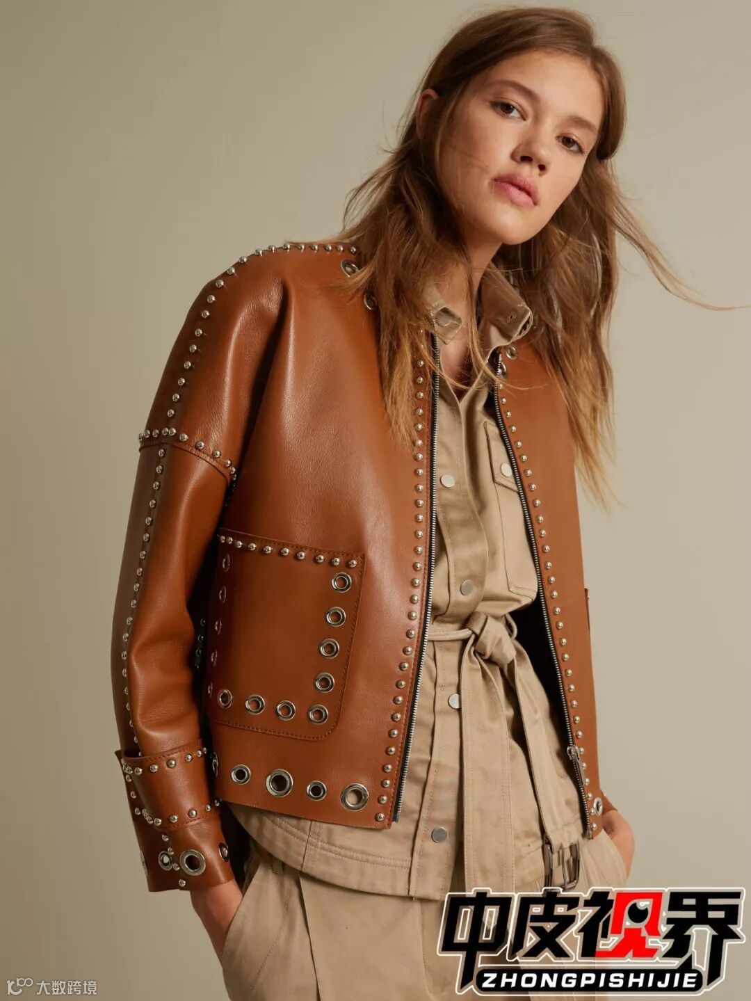 金属气眼在皮衣单品当中运用颇多,带有质感的金属配件增强了衣服的表现力与质感。