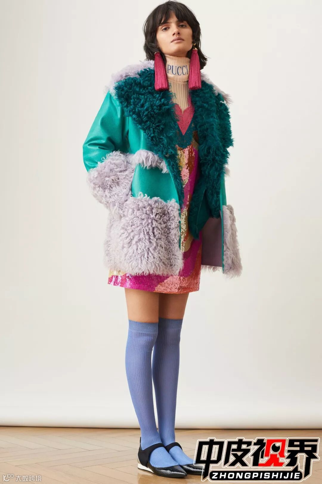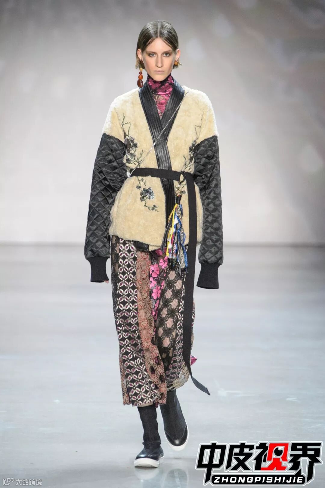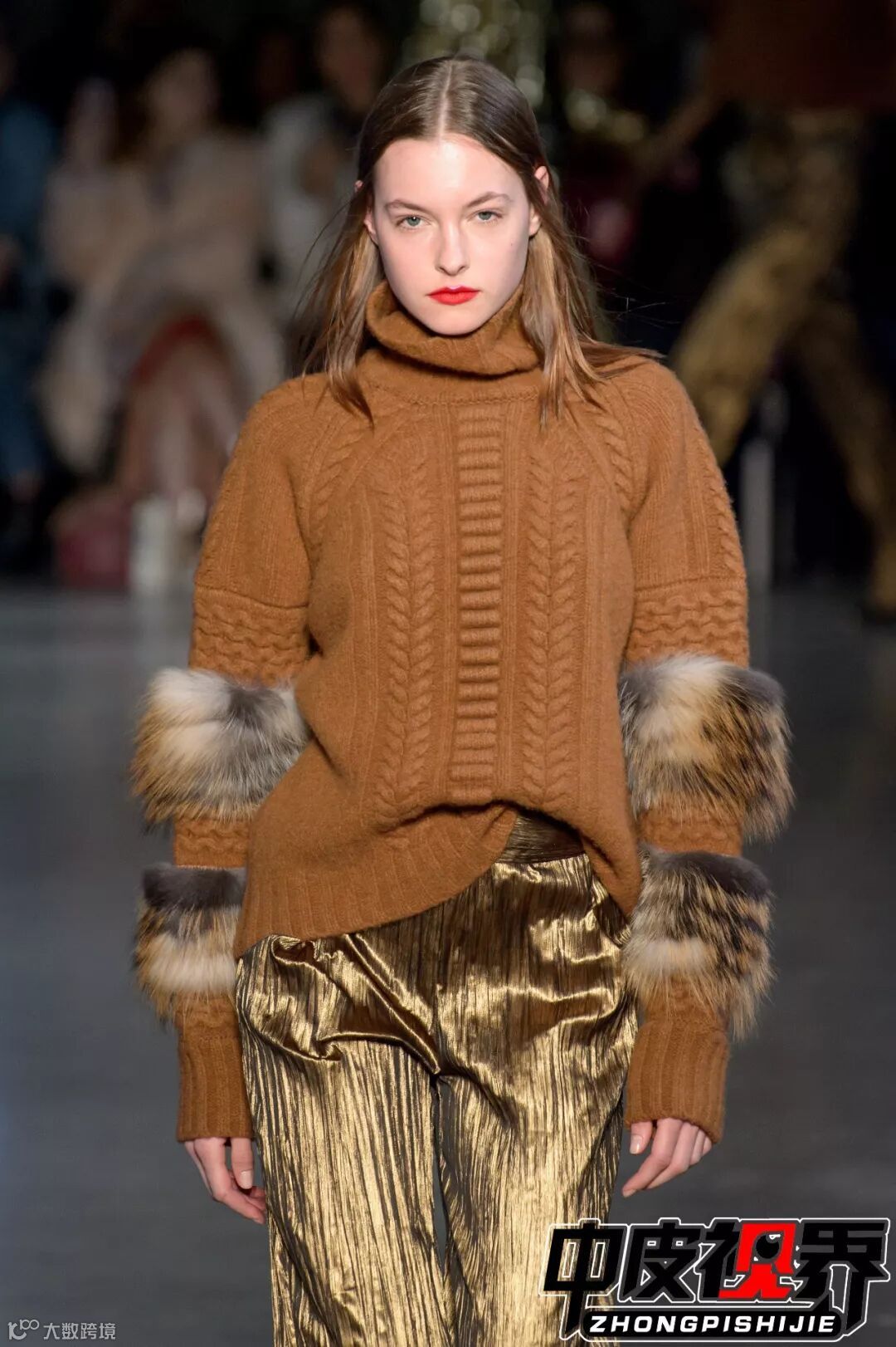 极具东方特色的织锦面料与皮草款式结合