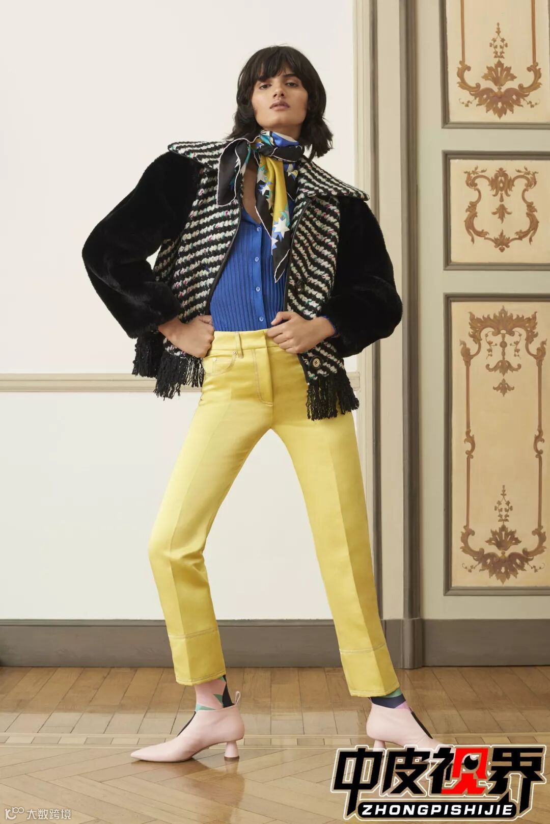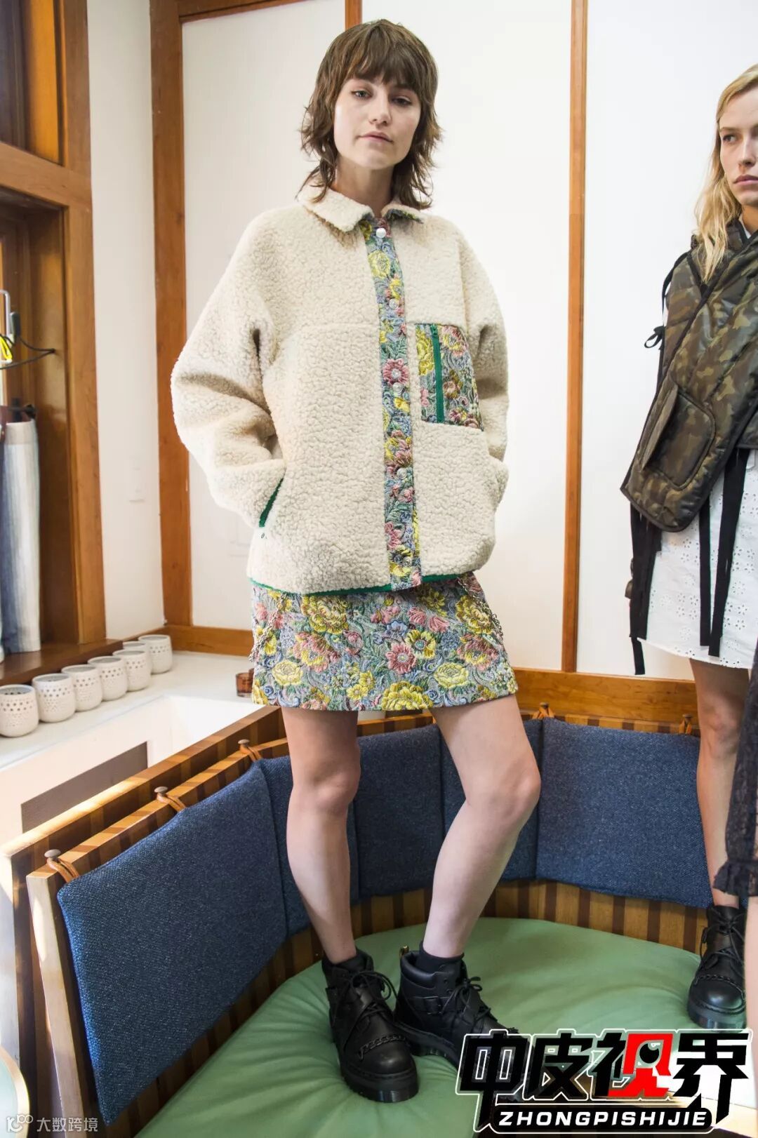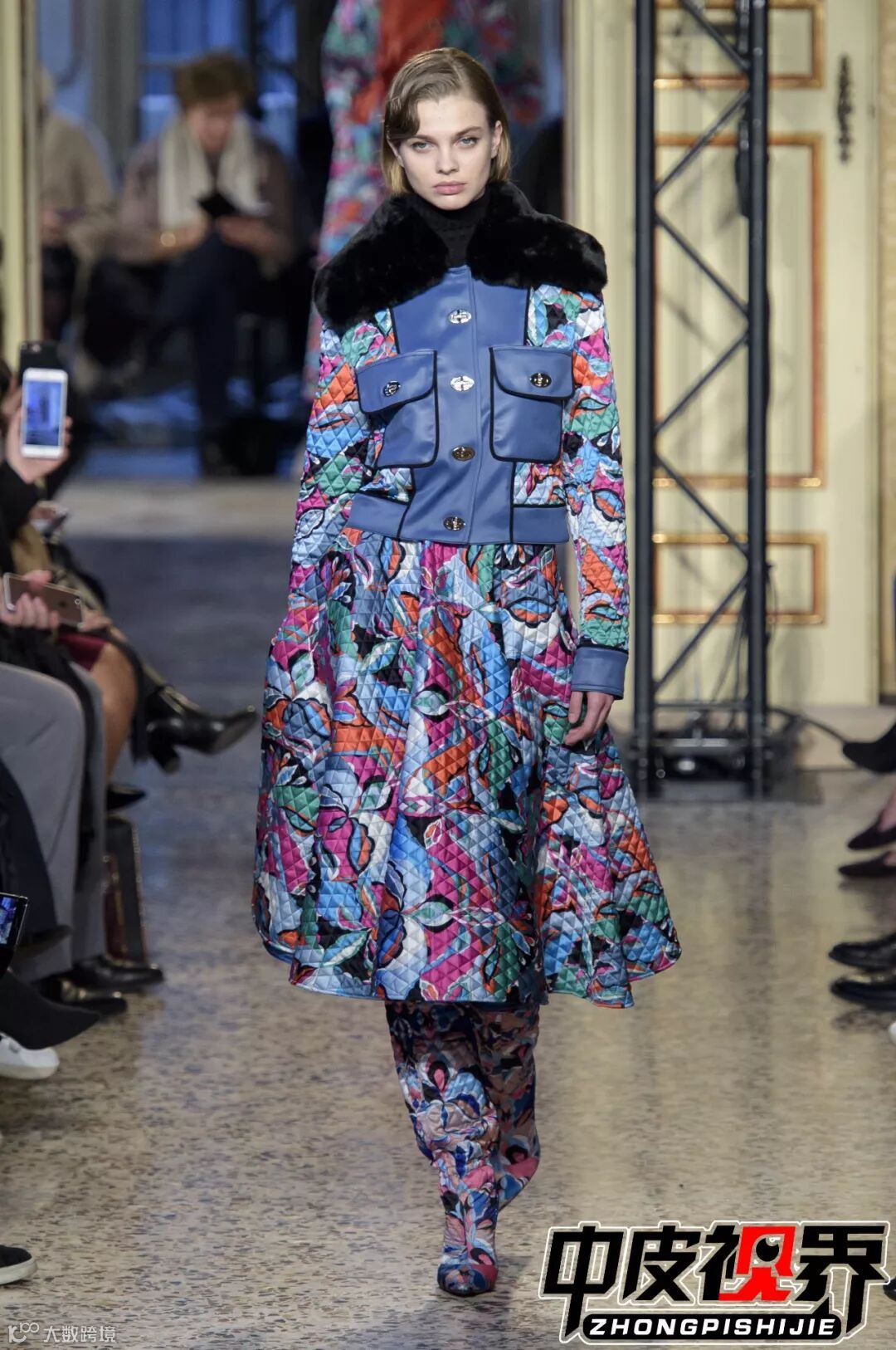 极具东方特色的织锦面料与皮草款式结合