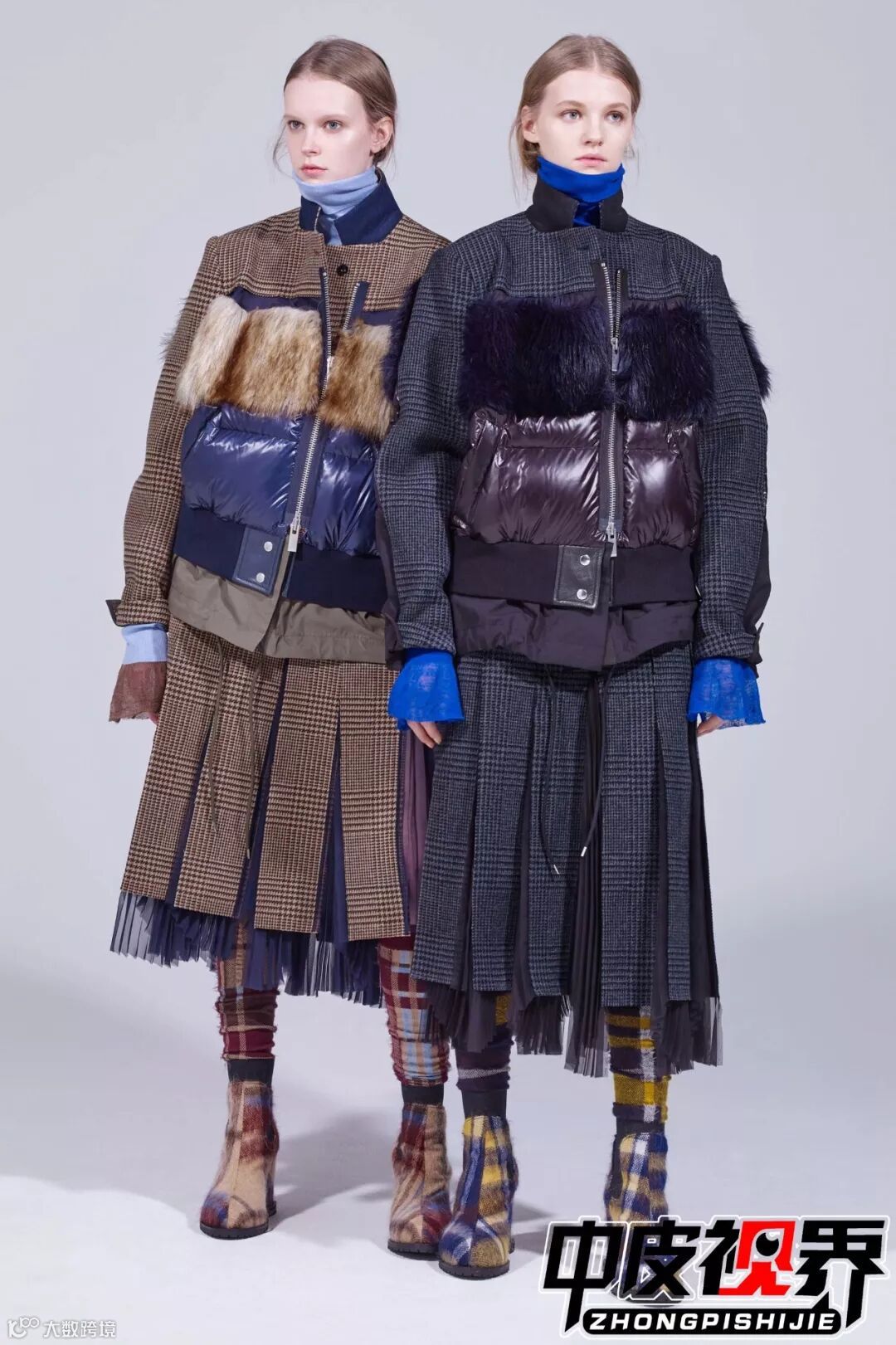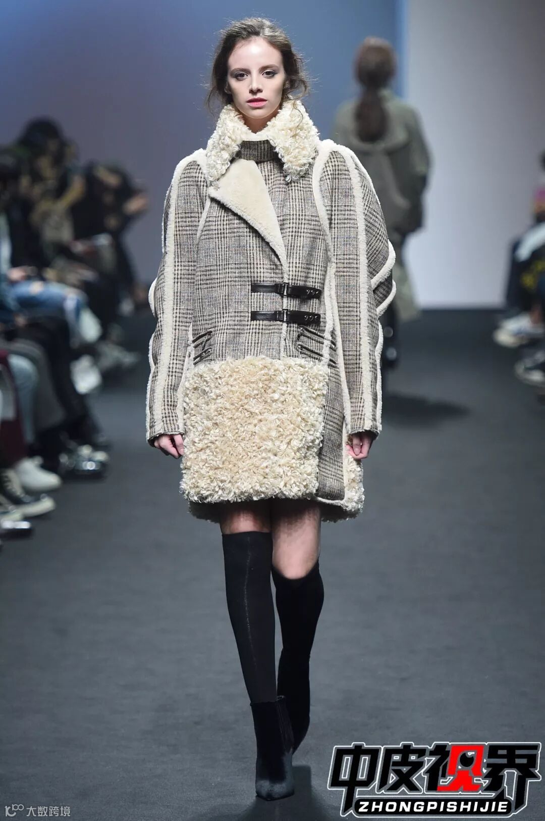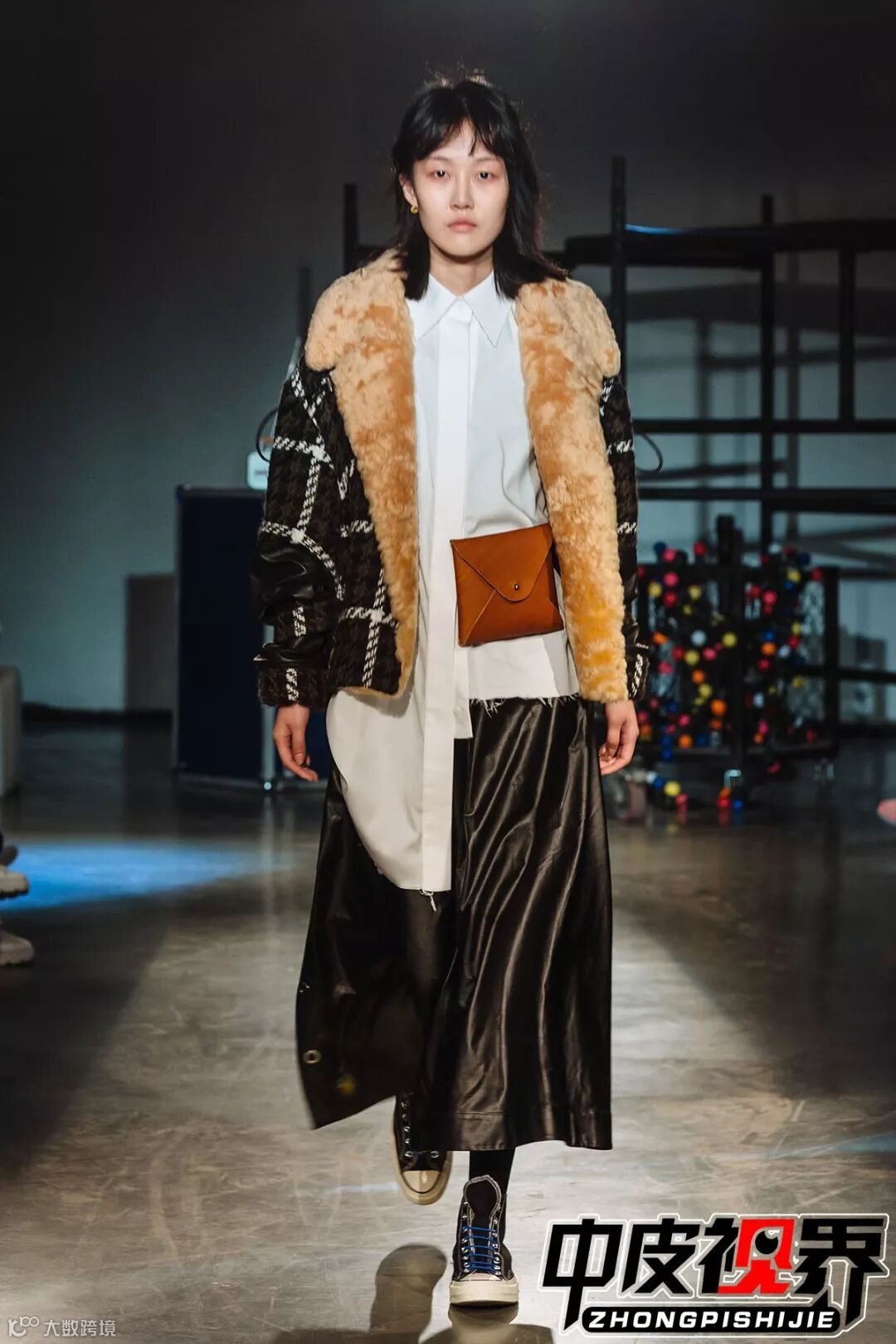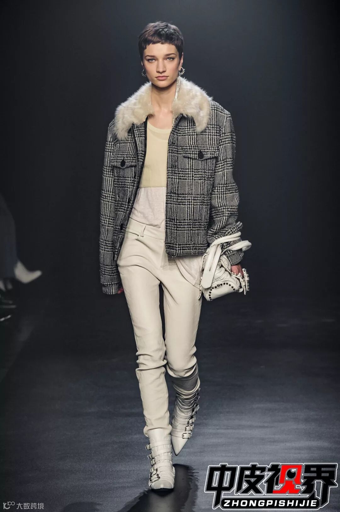 特色的花呢面料拼接与皮革皮草拼接