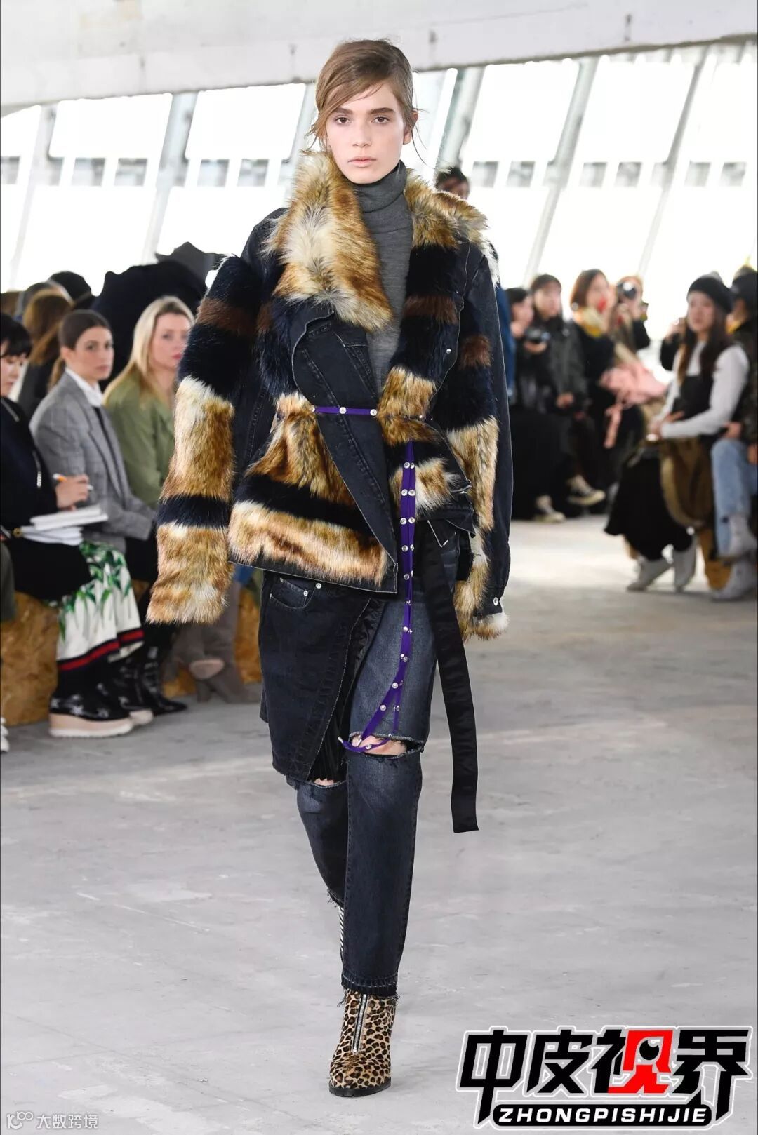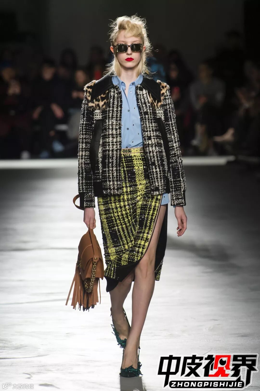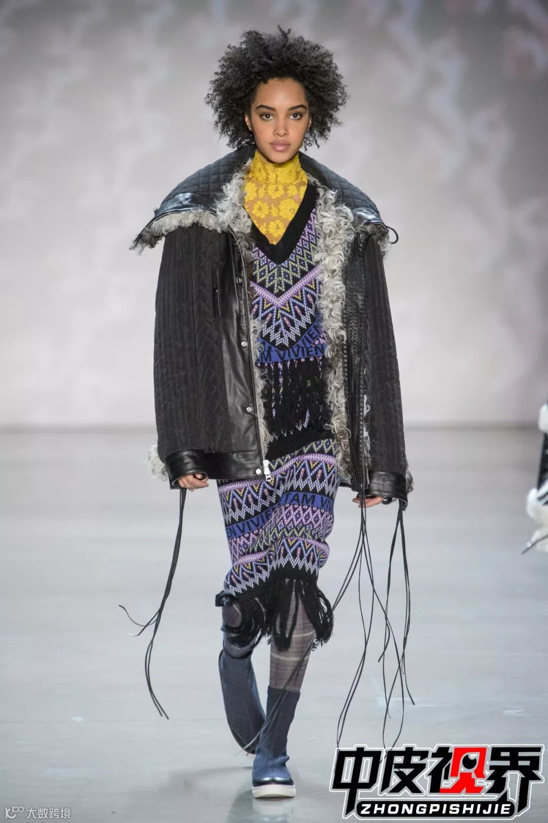 特色的花呢面料拼接与皮革皮草拼接