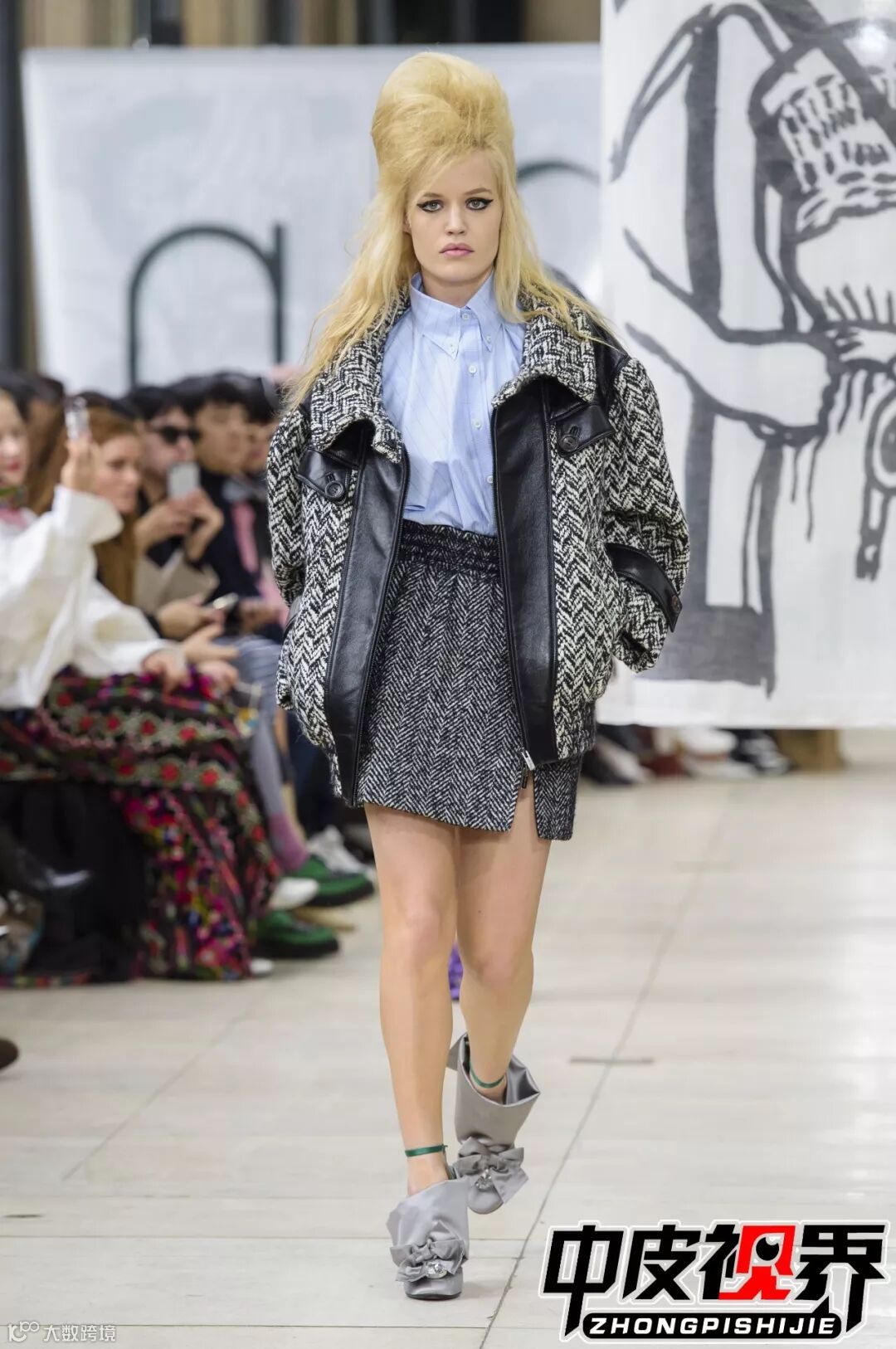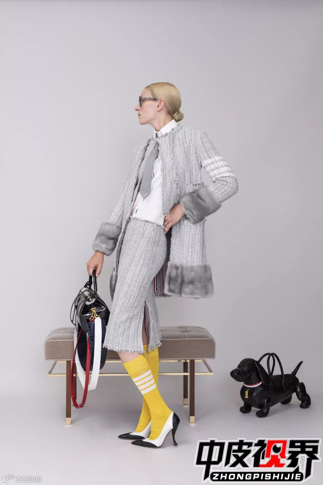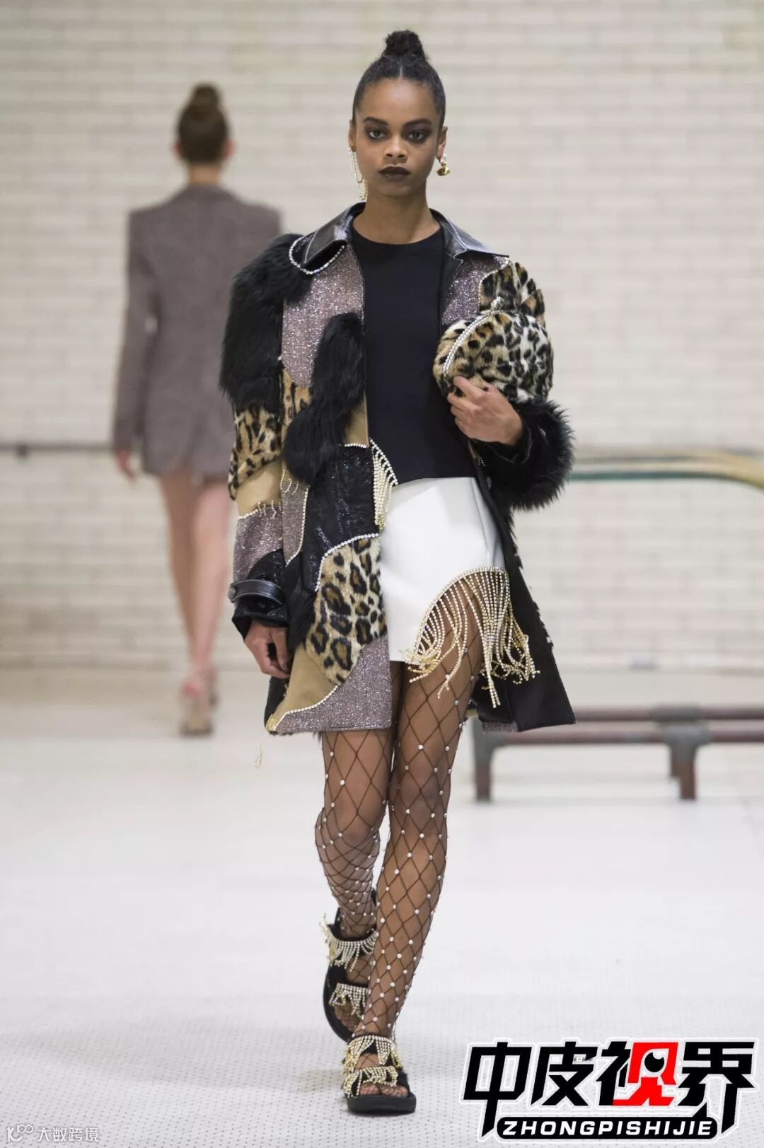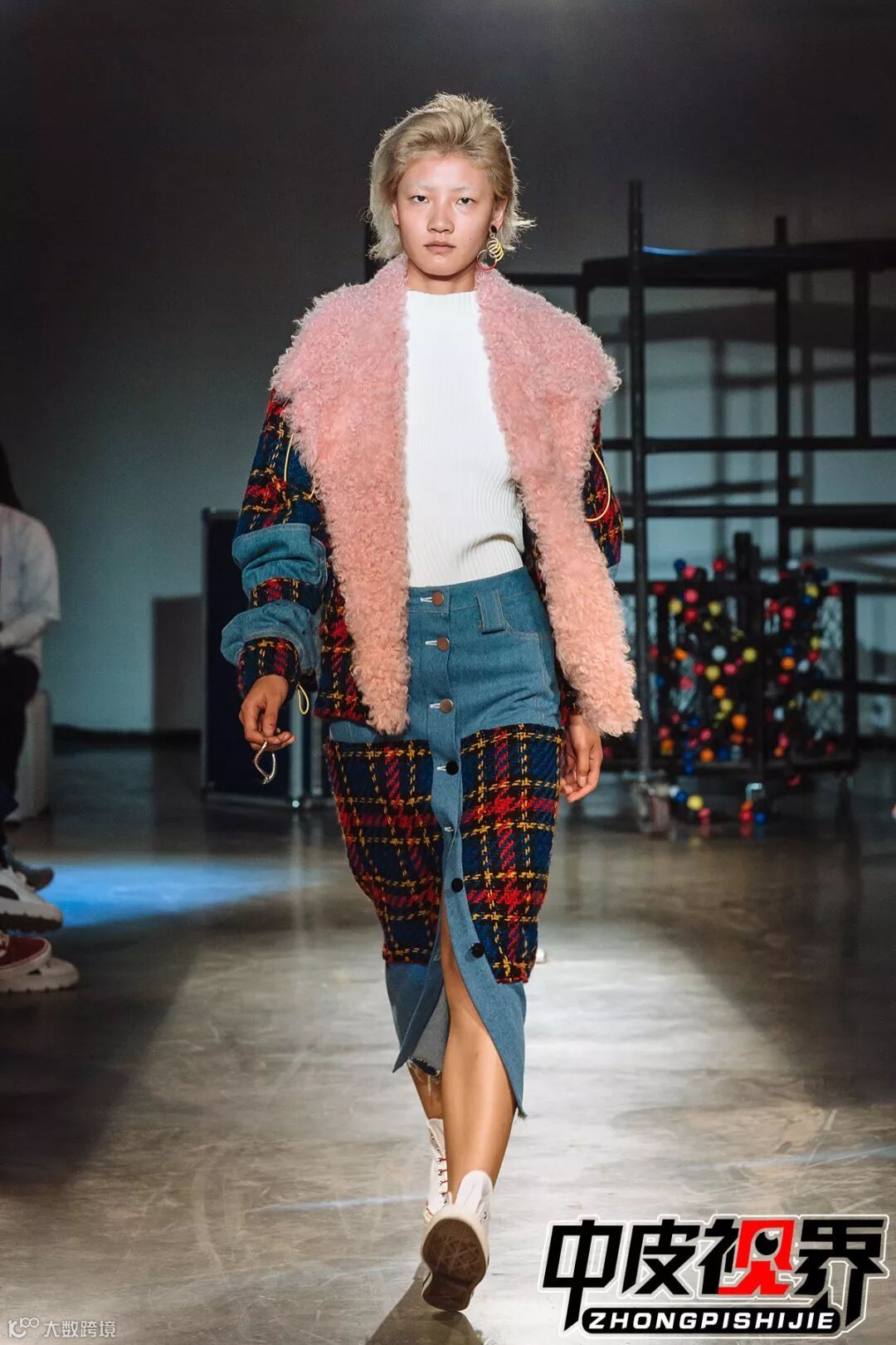 特色的花呢面料拼接与皮革皮草拼接
